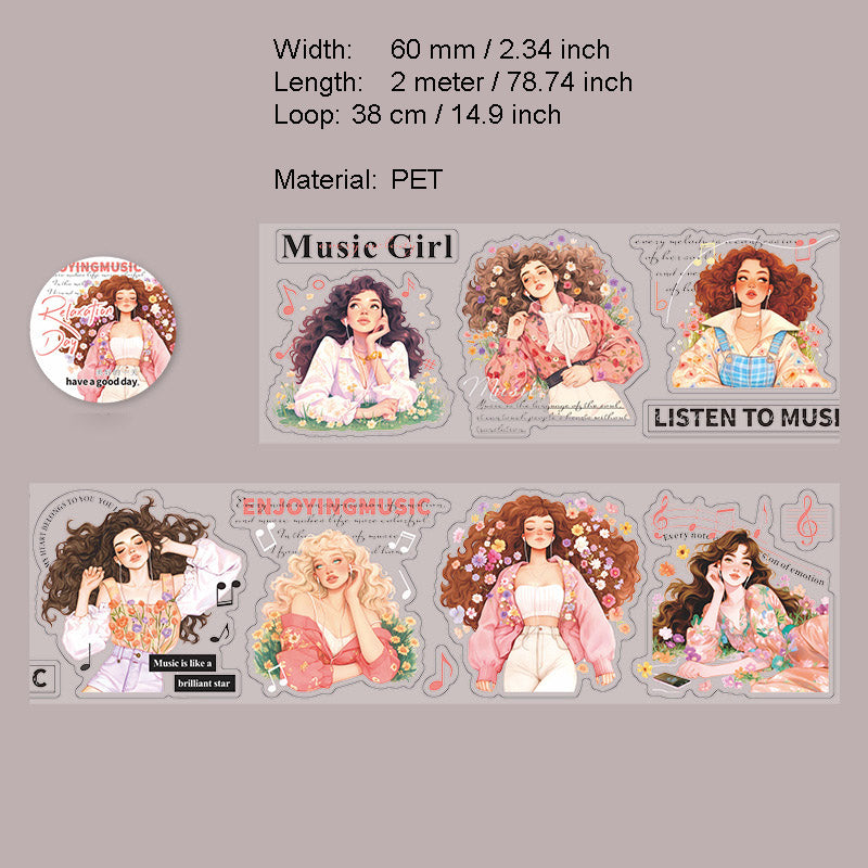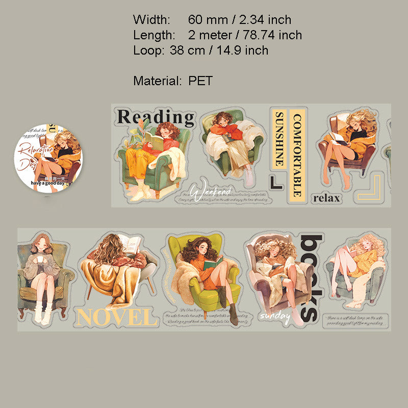 1 Roll Relax Girl Theme PET Stickers Tape FSRXL