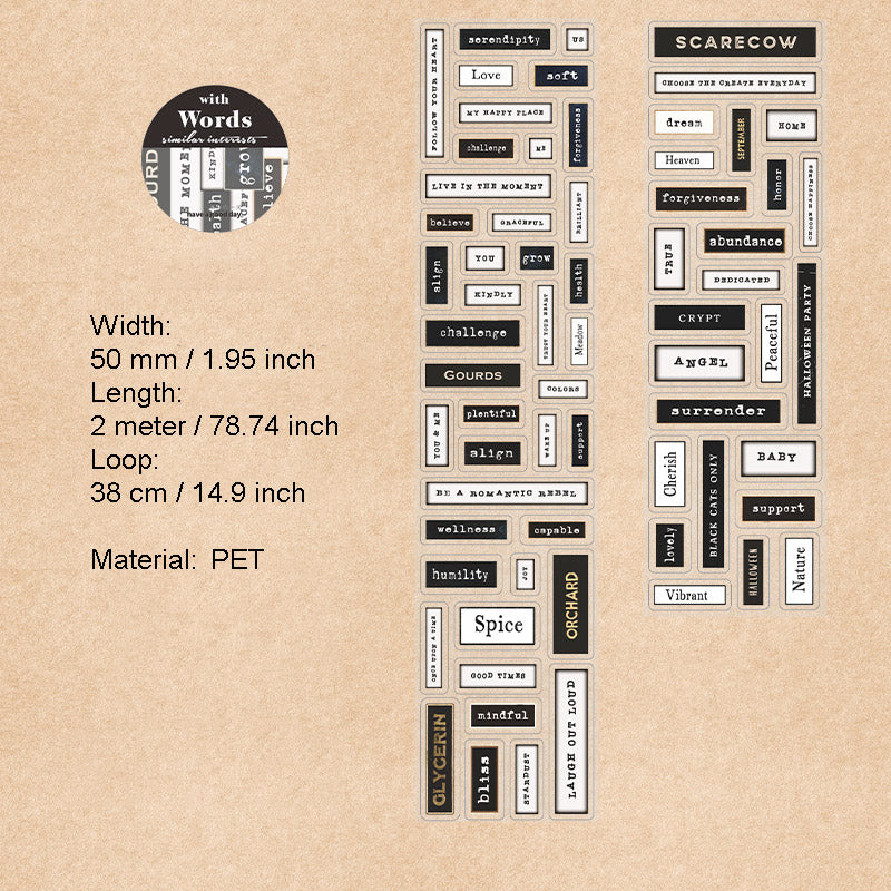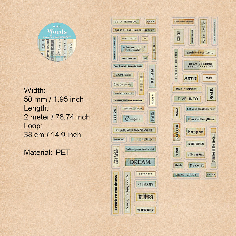 1 Roll Vitnage Words Stickers Tape ZQXT