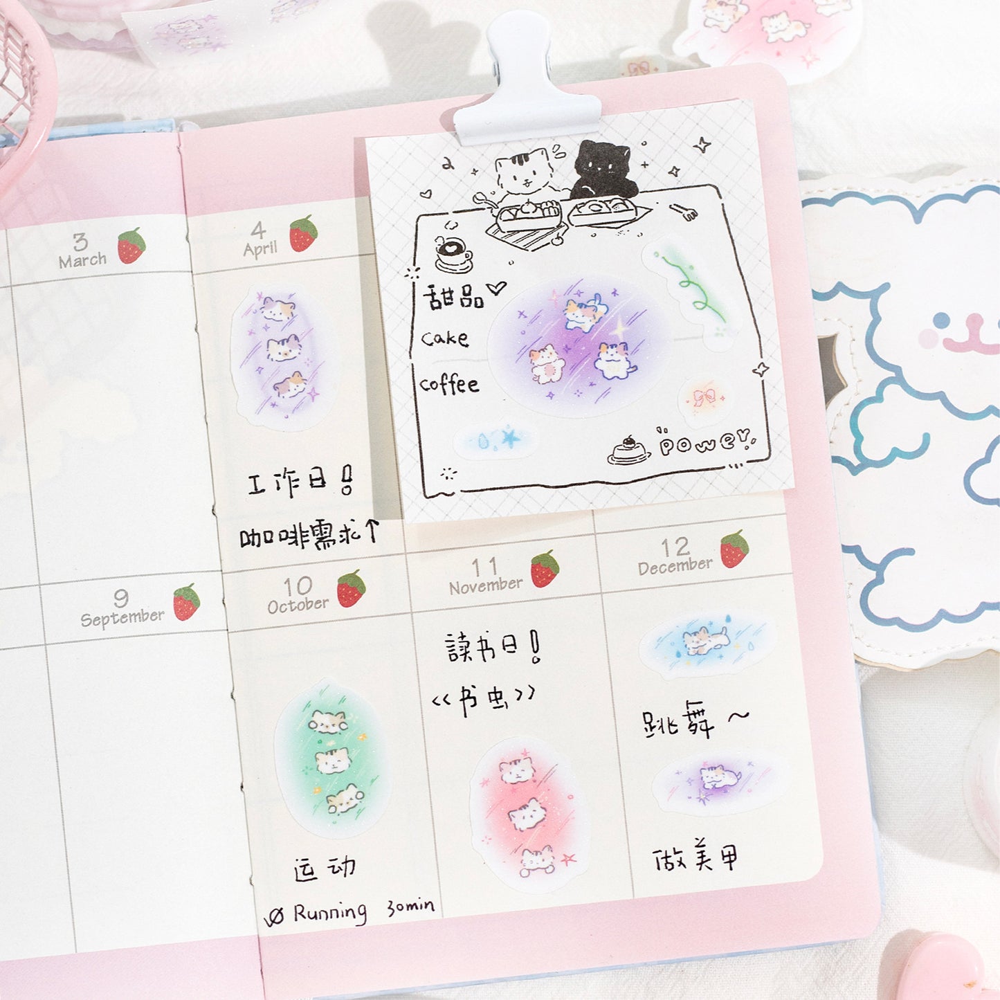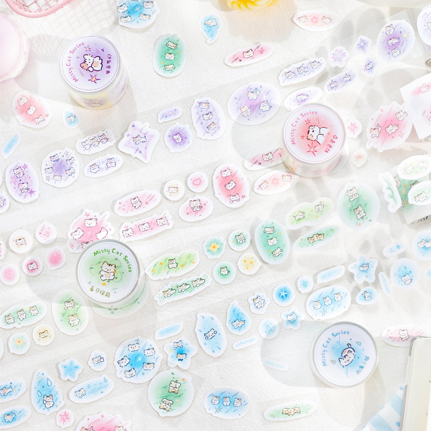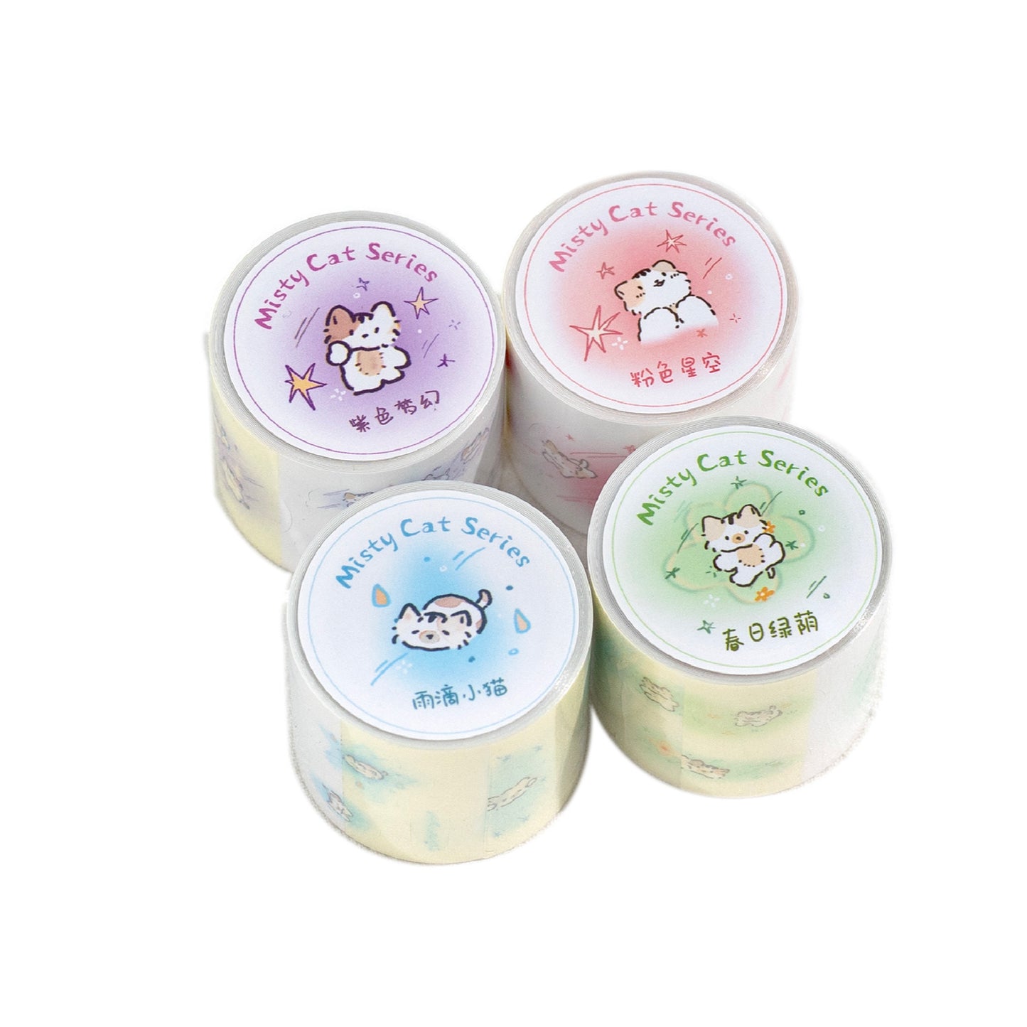 1 Roll Watercolor Cat PET Stickers Tape YYMM