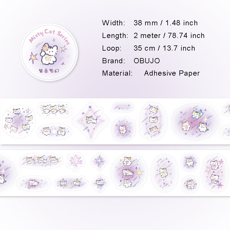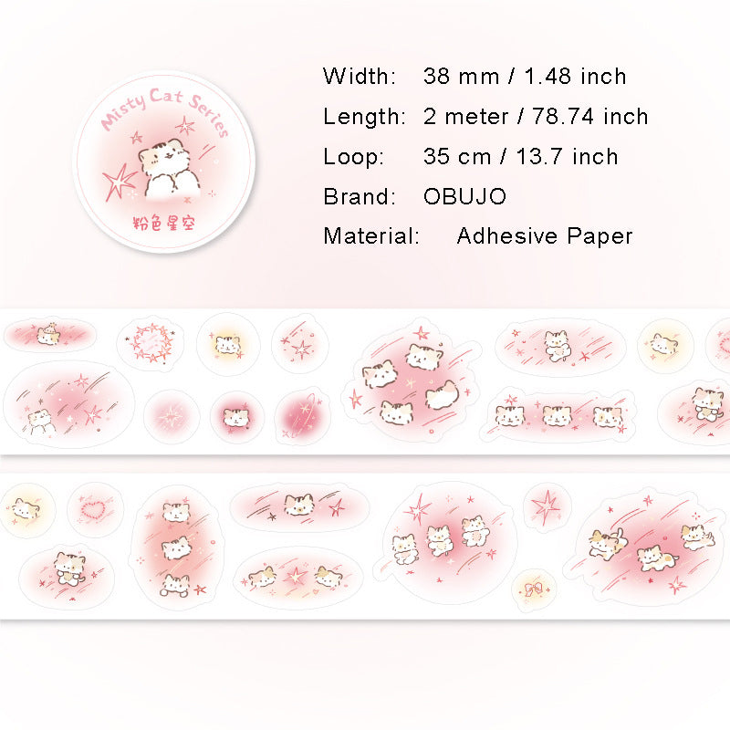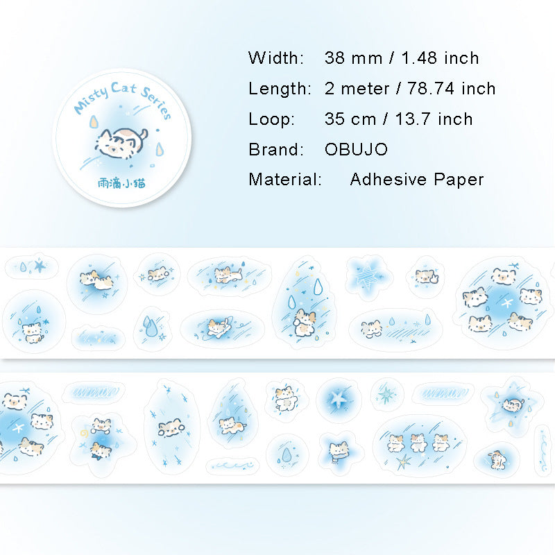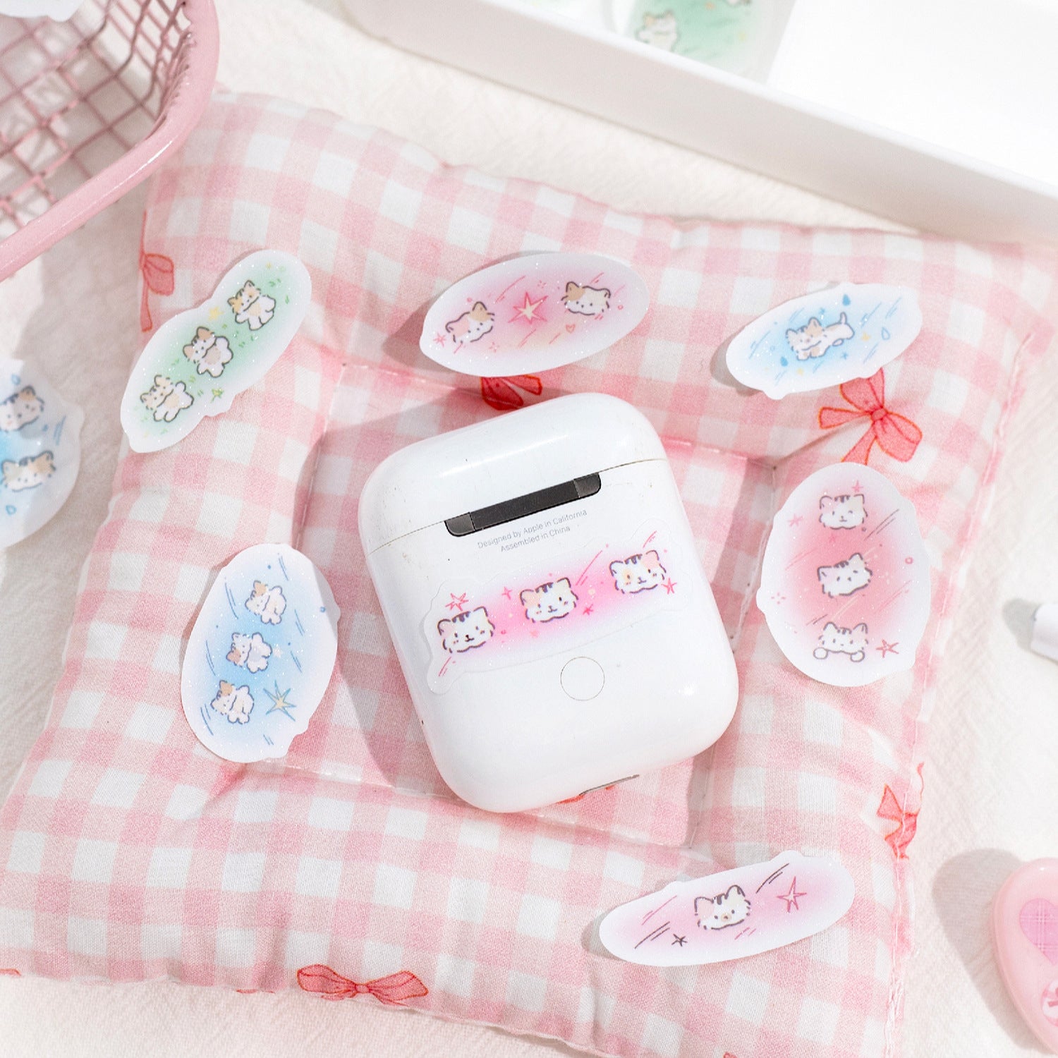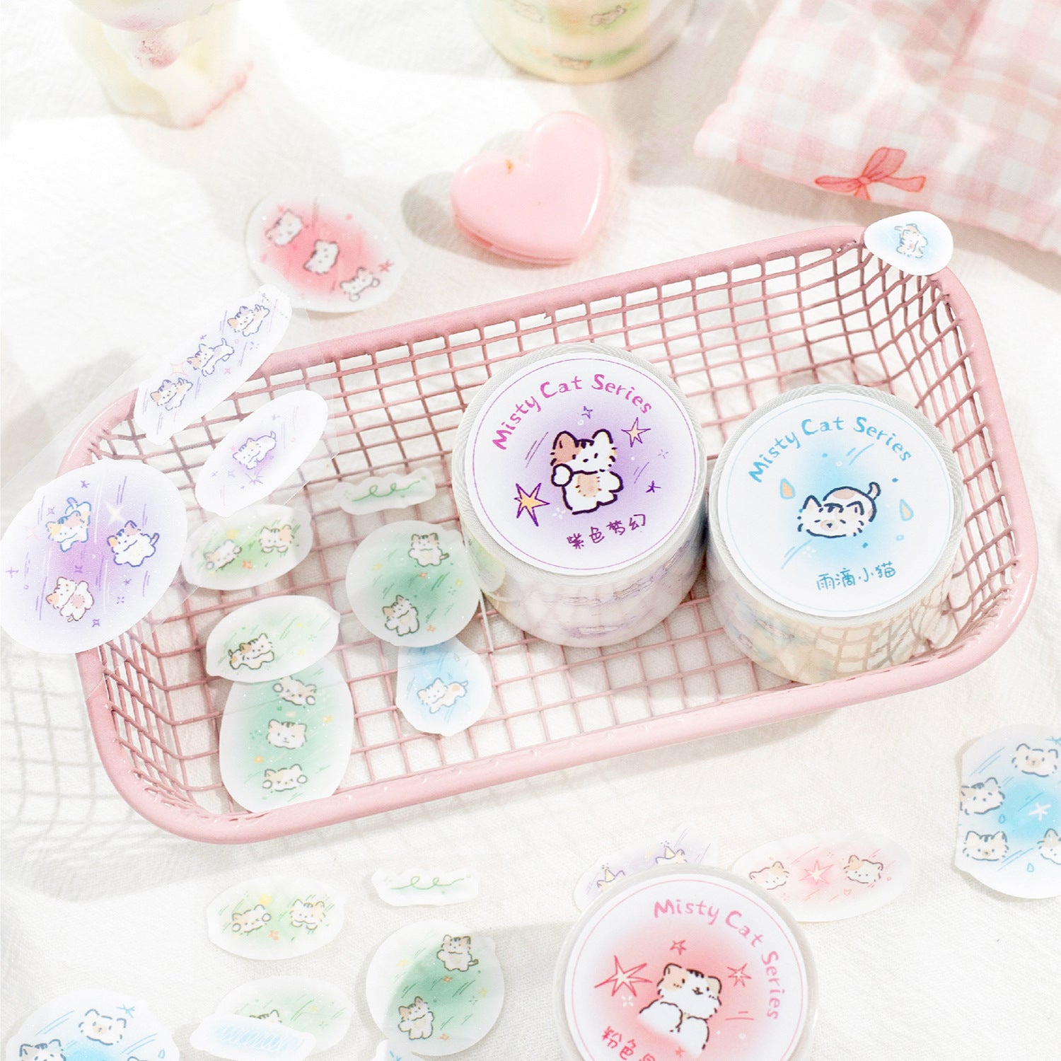 1 Roll Watercolor Cat PET Stickers Tape YYMM