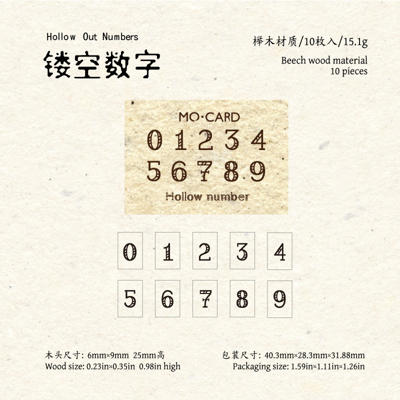 10 Pcs Alphabet Number Wooden Stamp Kit SZYJ