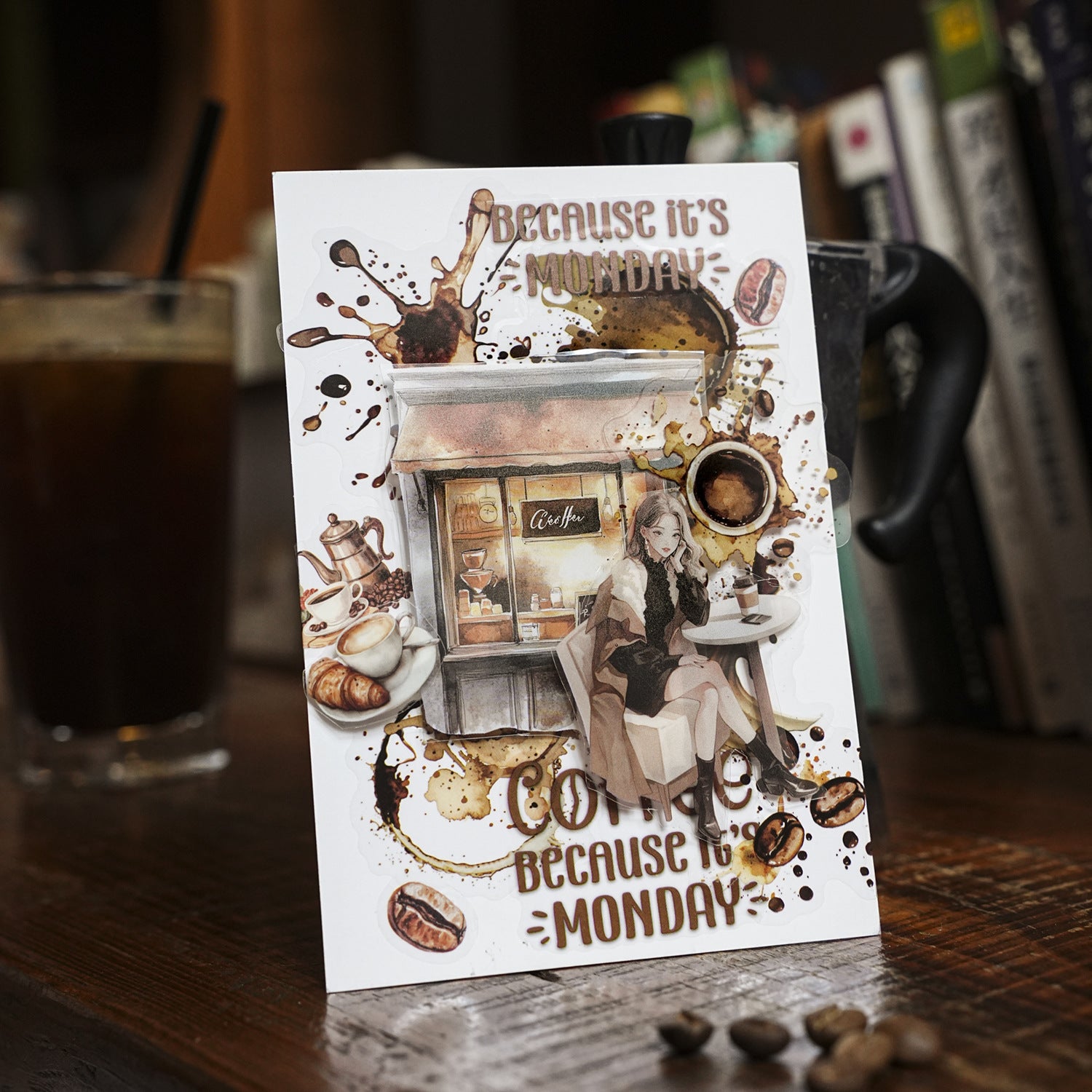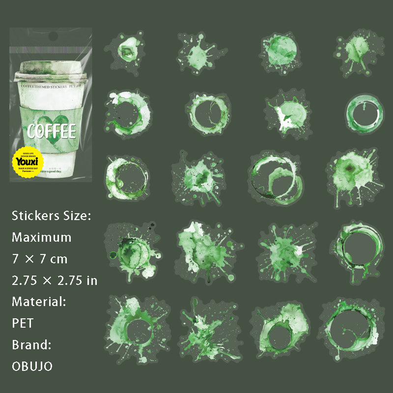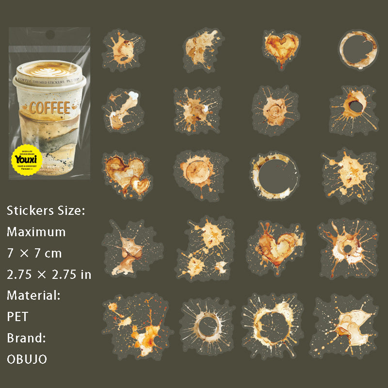 20 Pcs Coffee Stain PET Stickers KFDYS