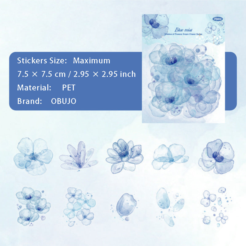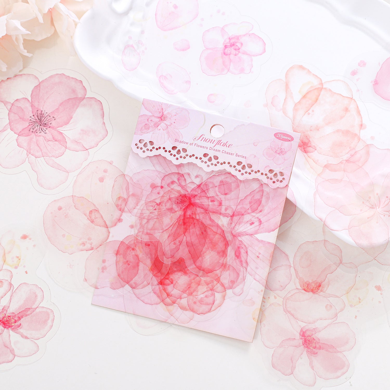 20 Pcs Watercolor Flower Petal PET Stickers HYBM
