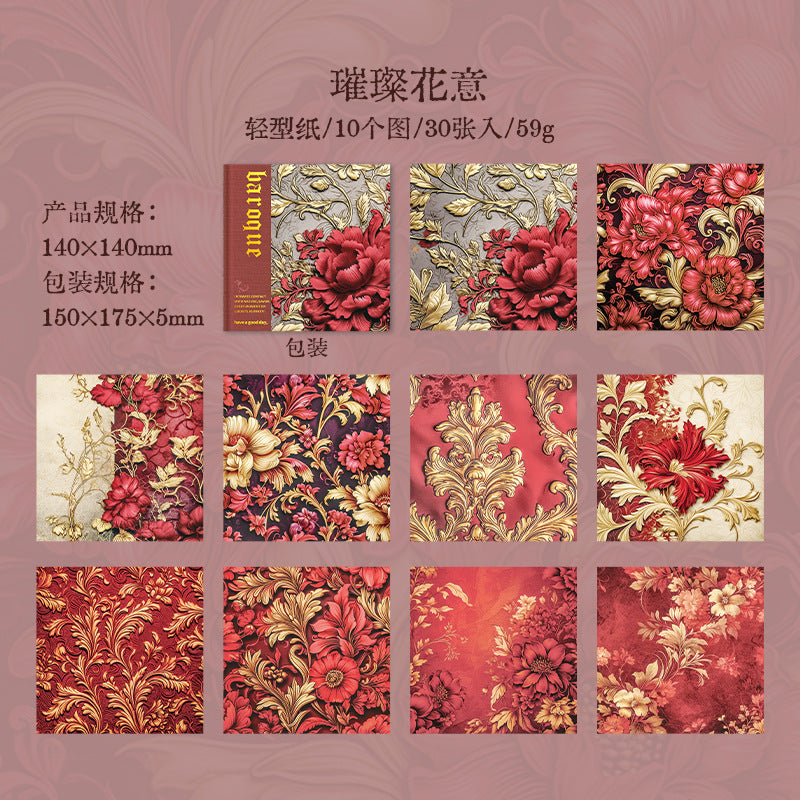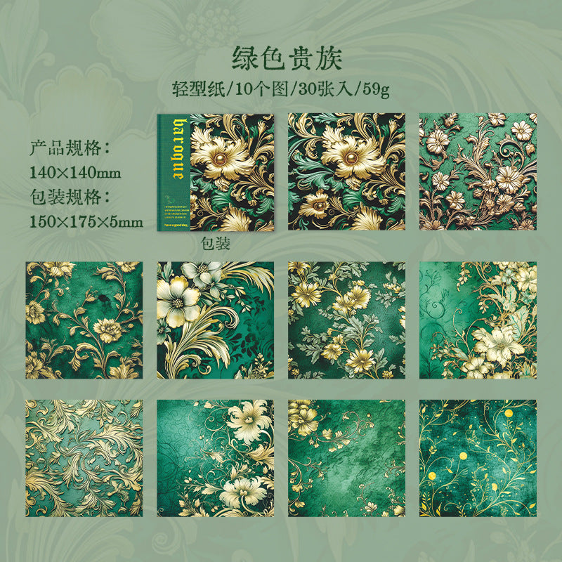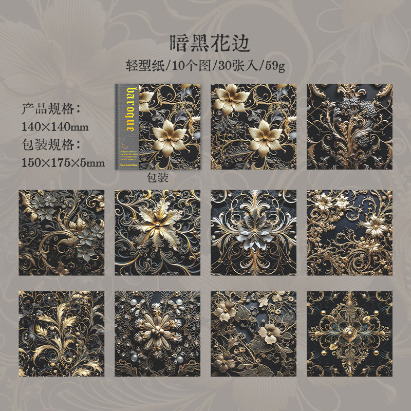30 Pcs Baroque Theme Scrapbook Paper QMBLK