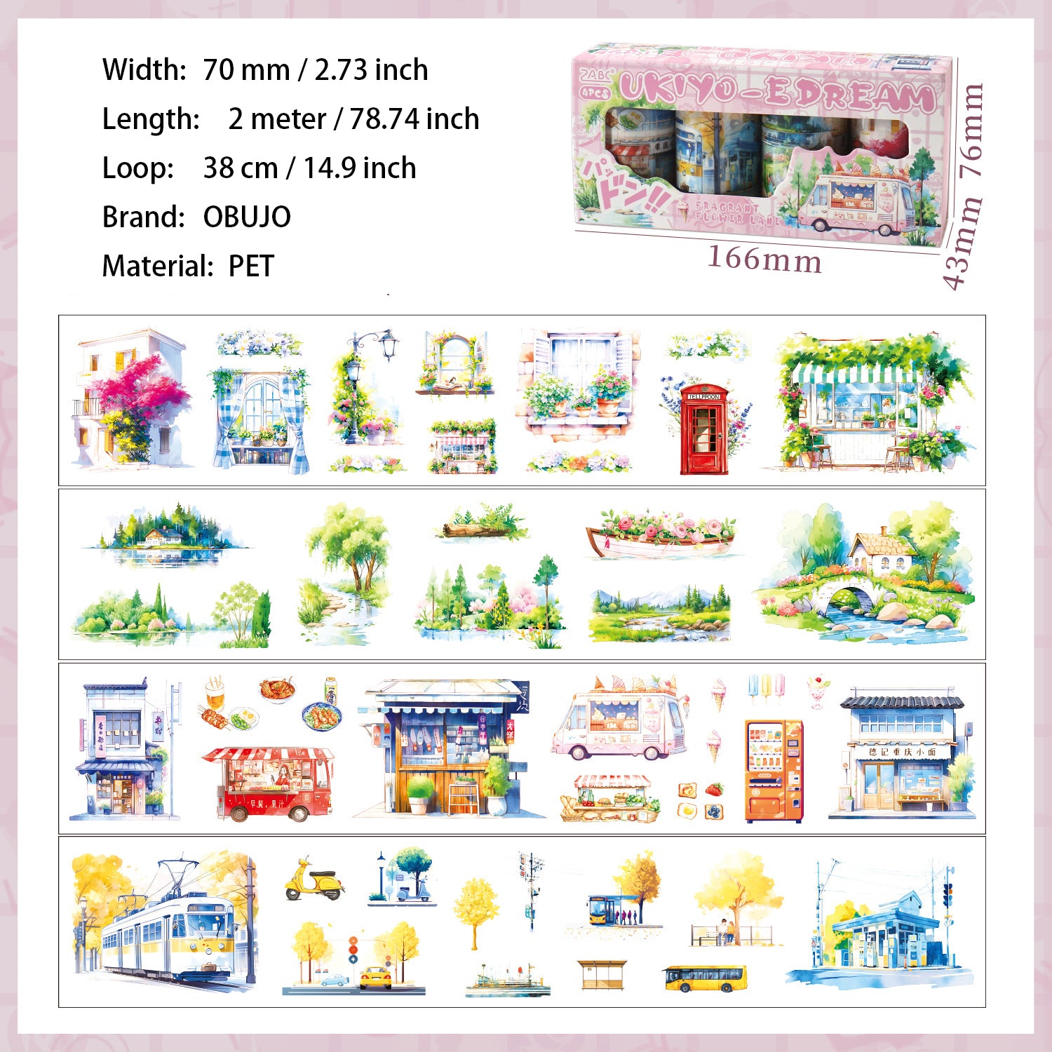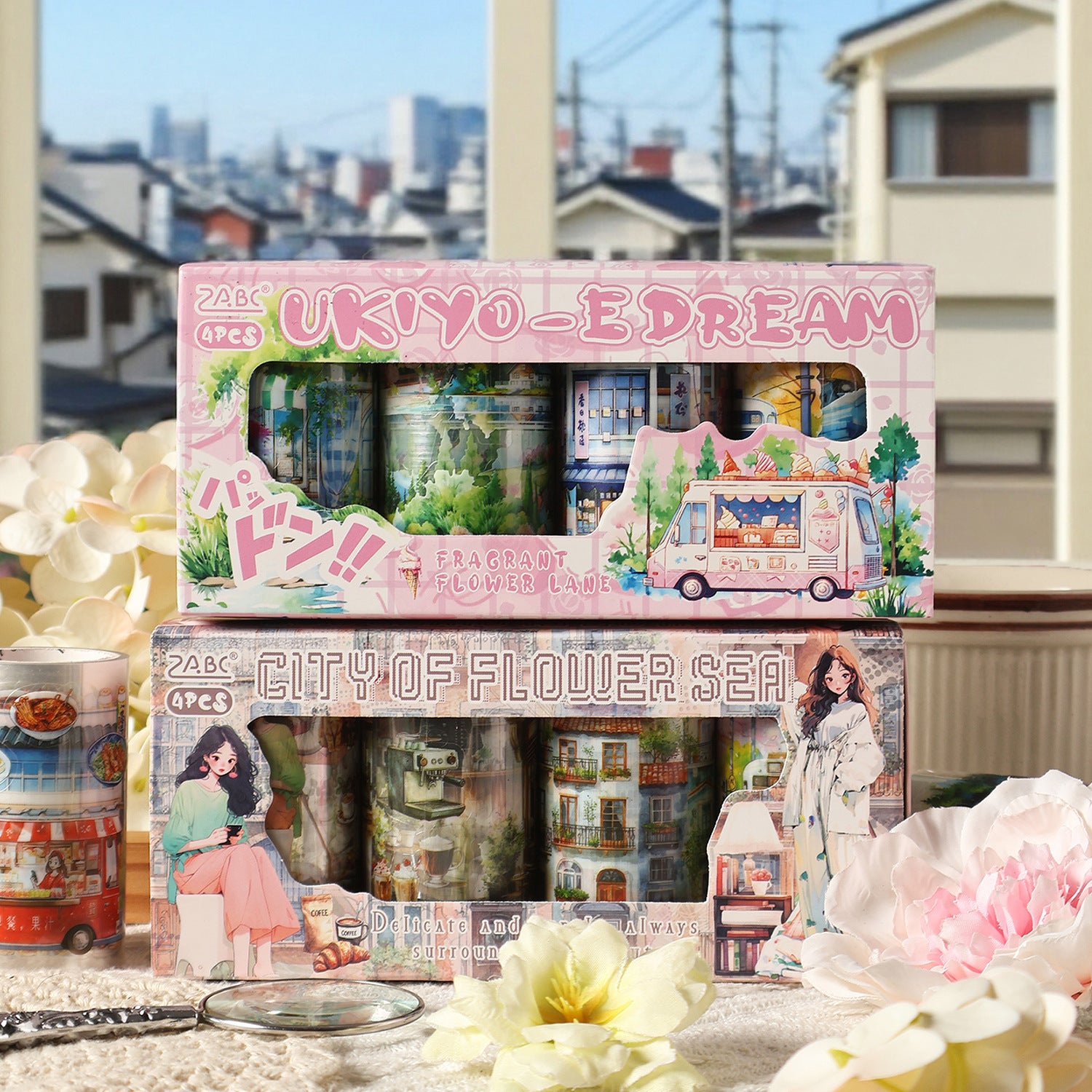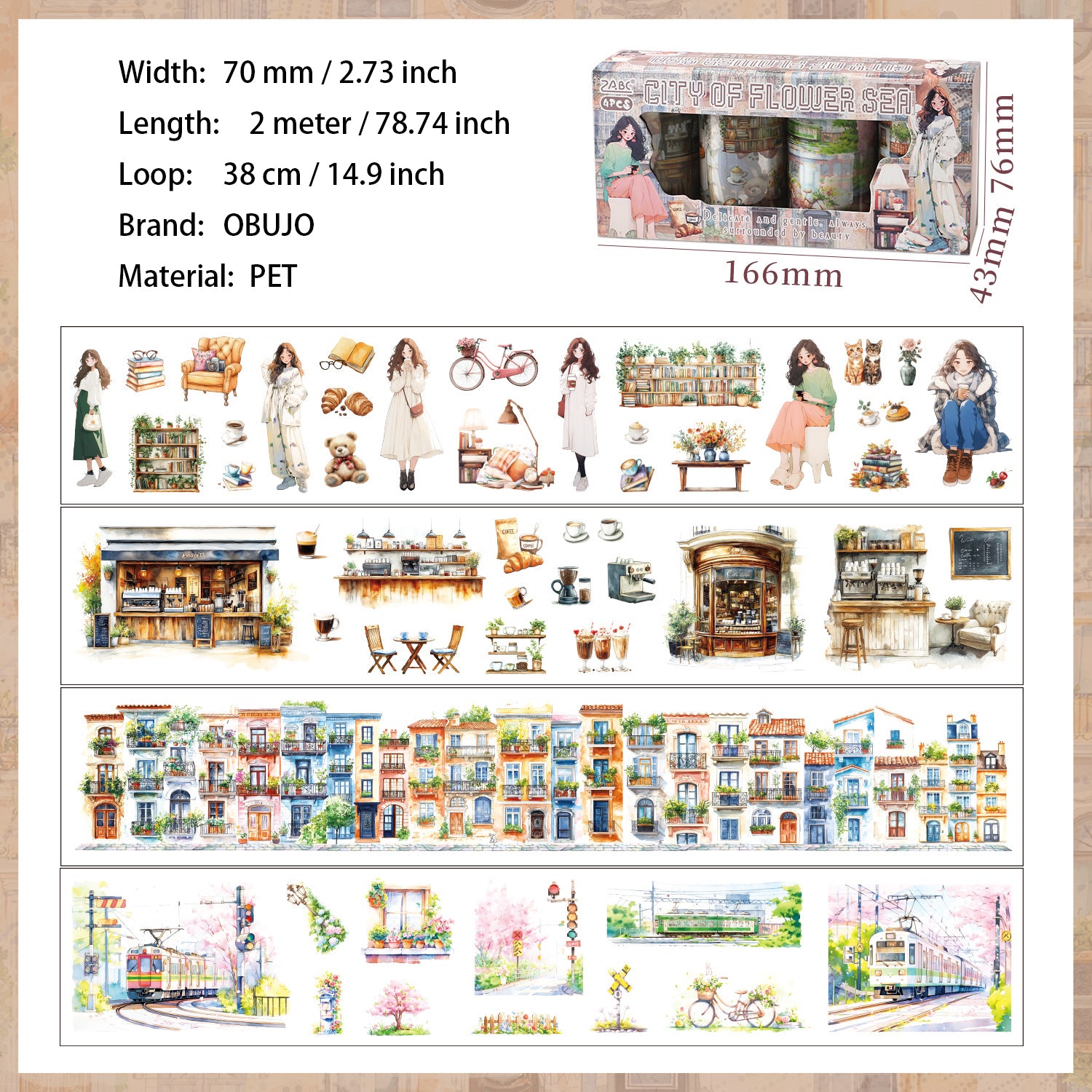 4 Rolls City Landscape PET Tapes Set HXFQ