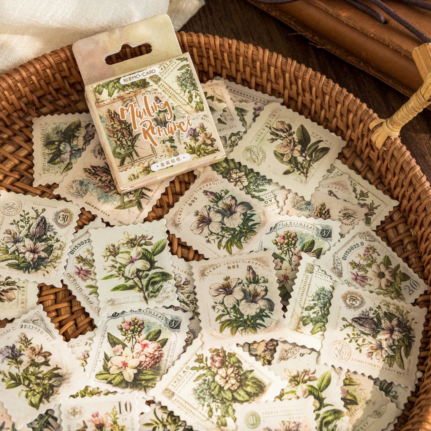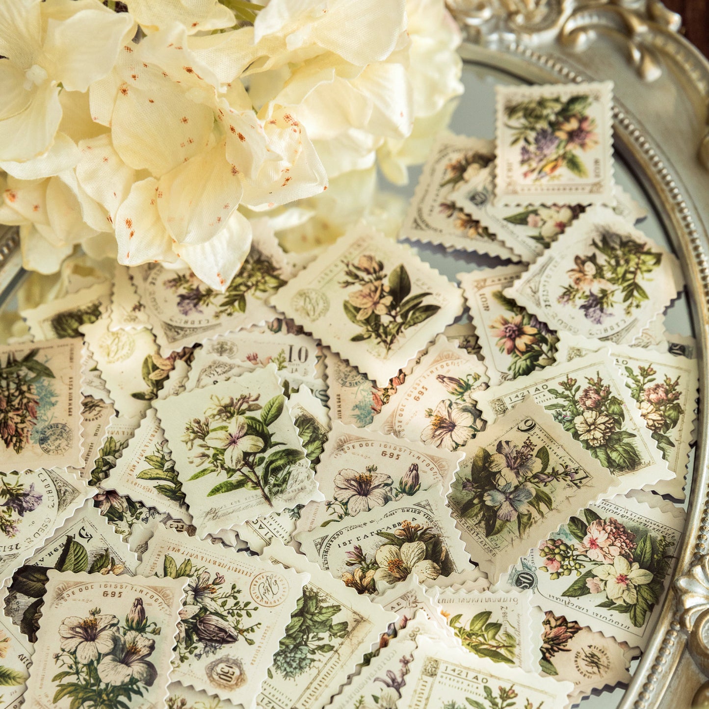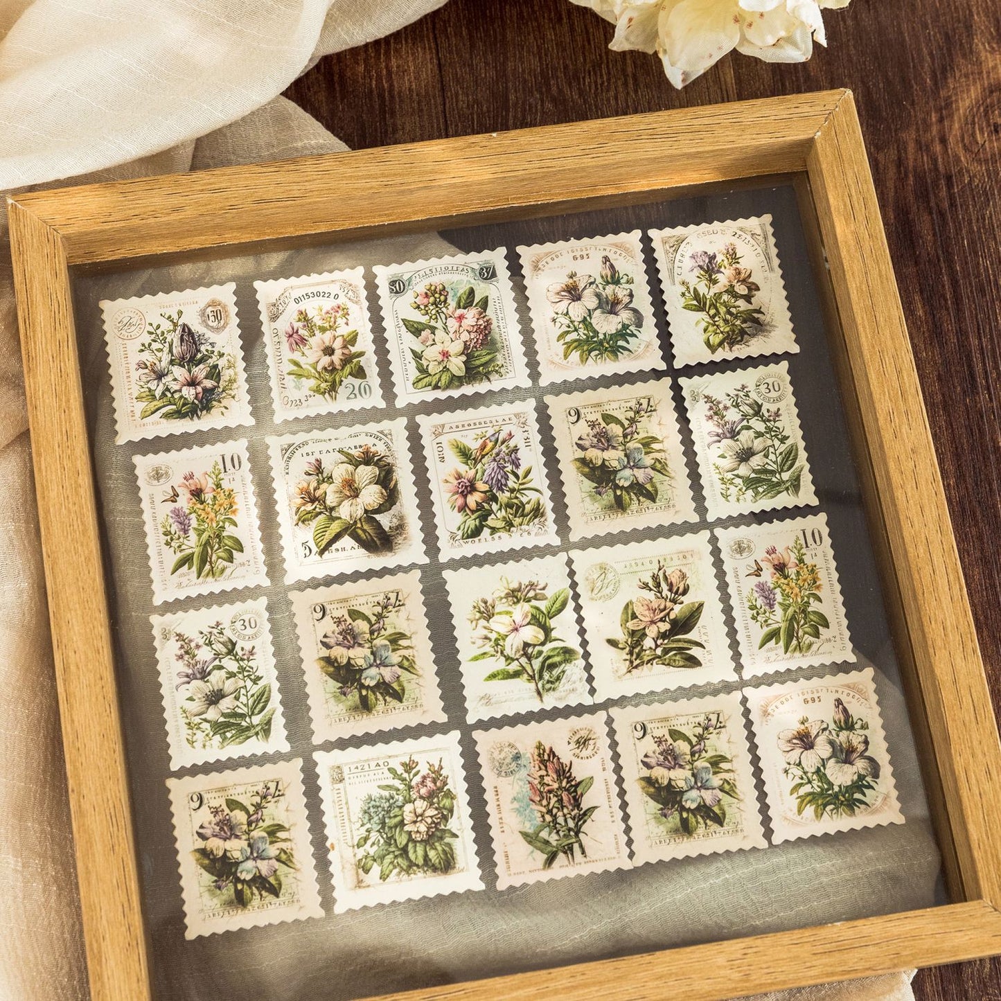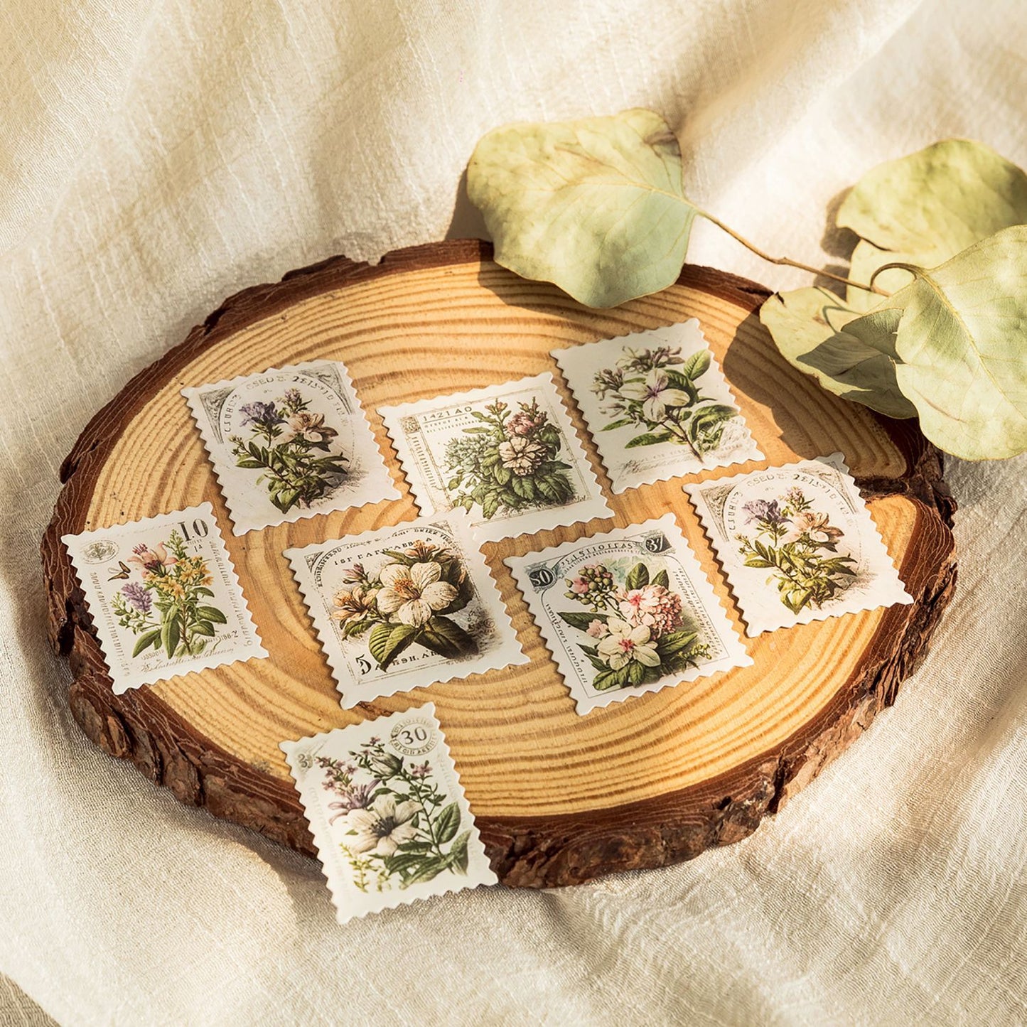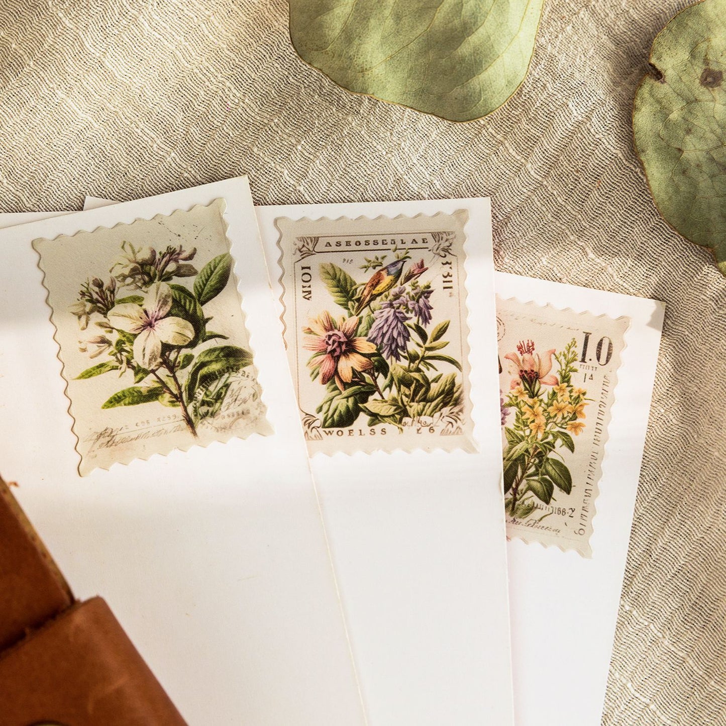 45 Pcs White Flower Postage Stamp Stickers YJLM