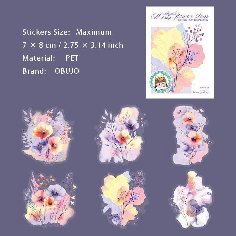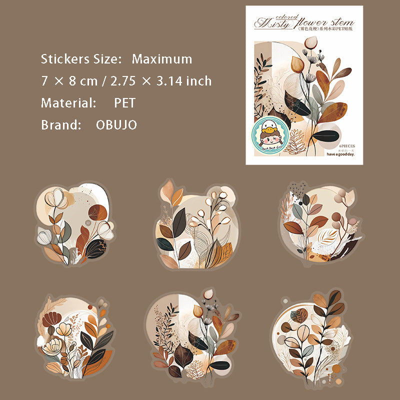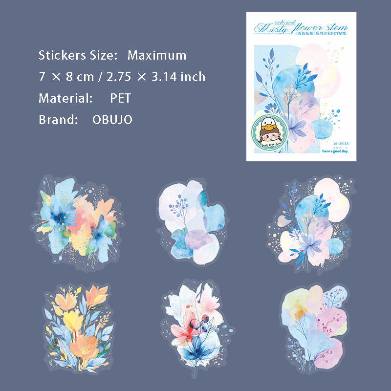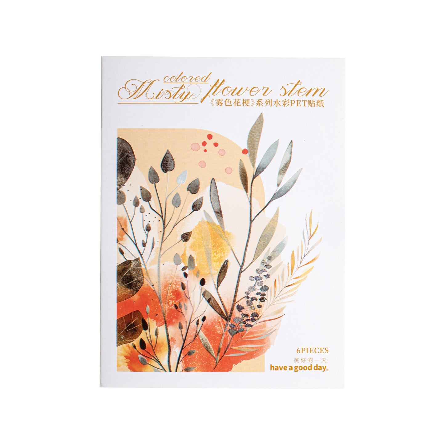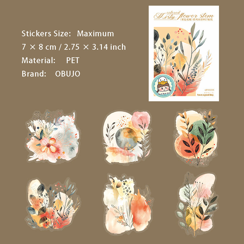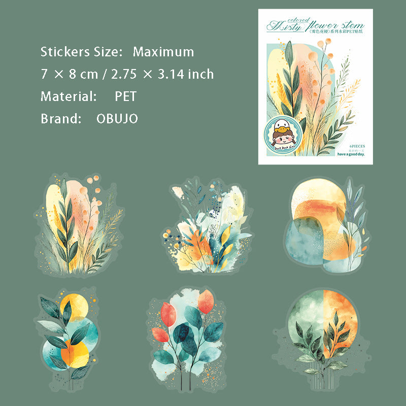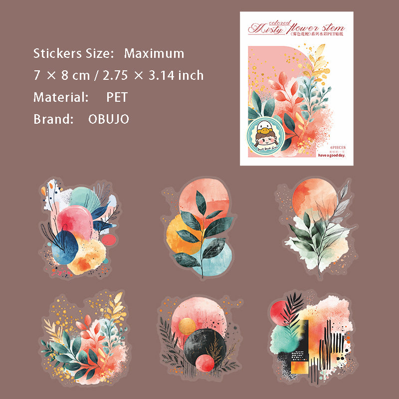 6 Pcs Watercolor Leaf PET Stickers WSHG