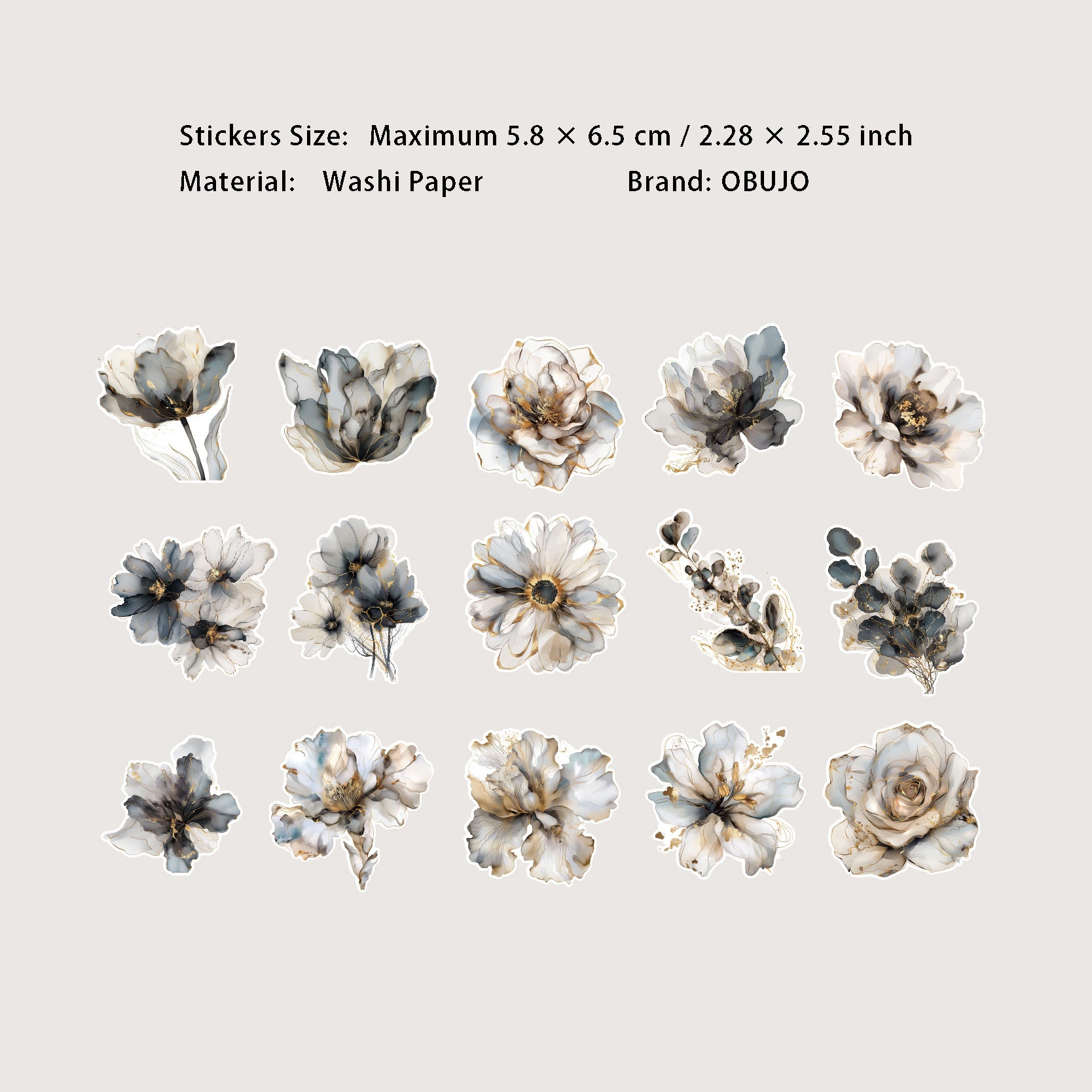 30 Pcs Gold Foil Flower Washi Stickers FHLJ