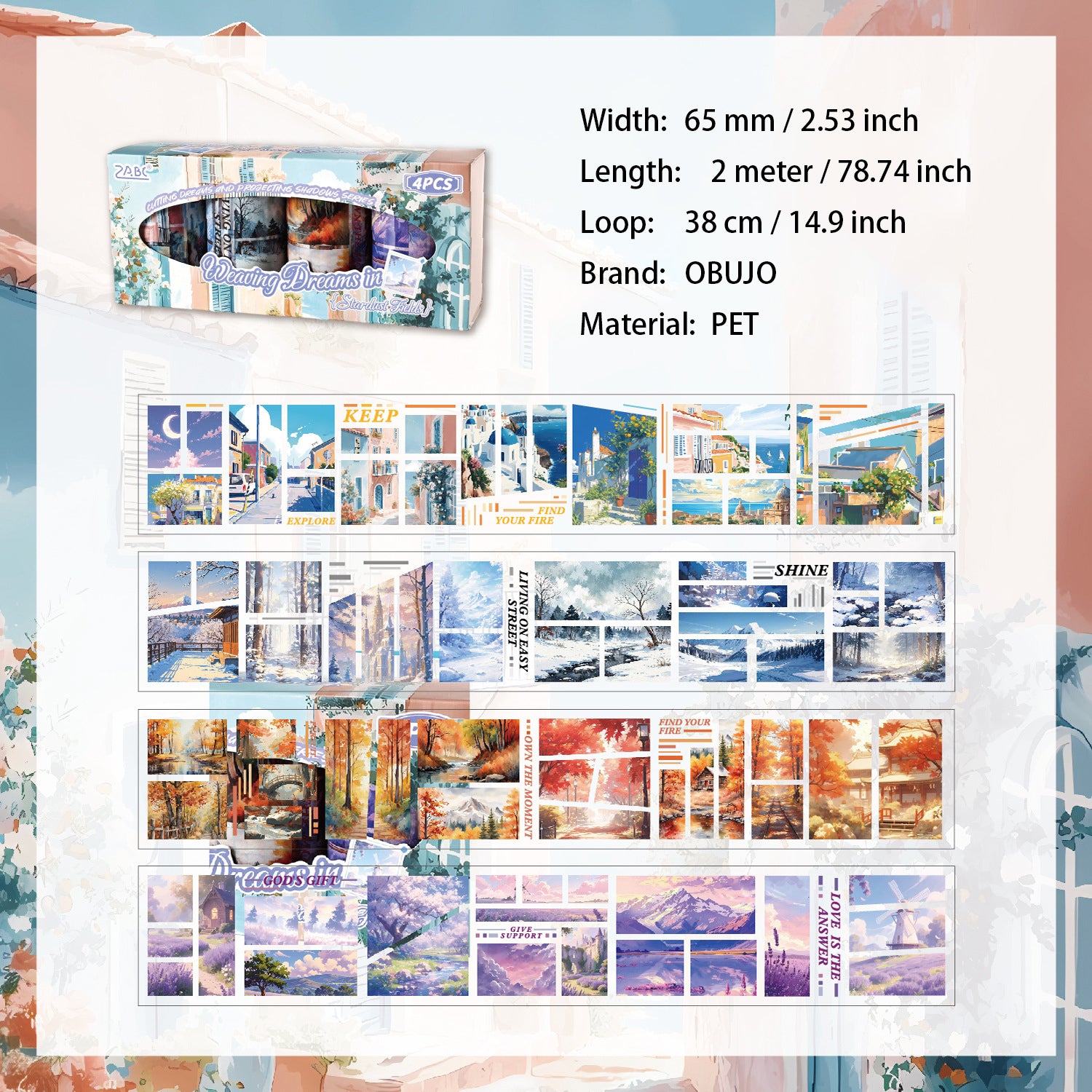 4 Rolls Natural Landscape PET Stickers Tapes Set JMTY