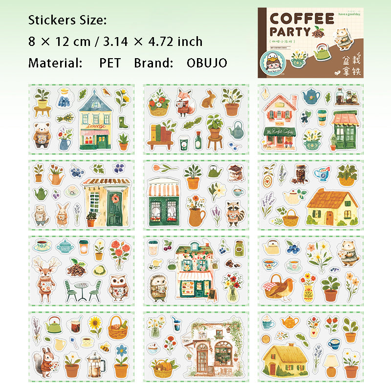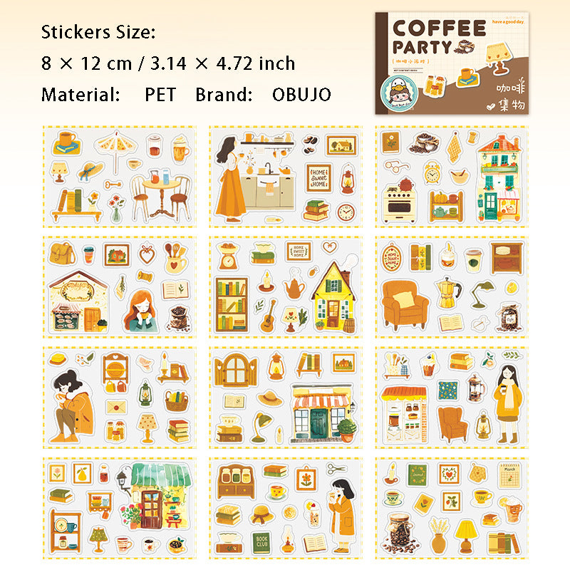 12 Sheets Coffee Dessert Planner Stickers Book KFXPD