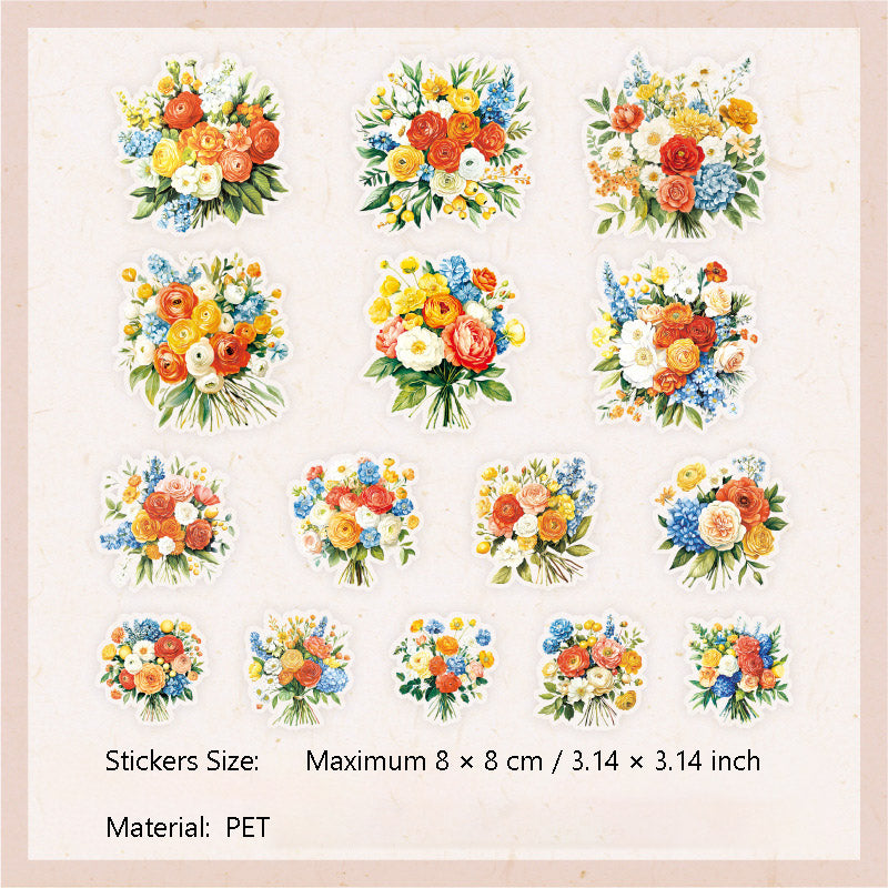 15 Pcs Seasonal Flower PET Stickers SJFH