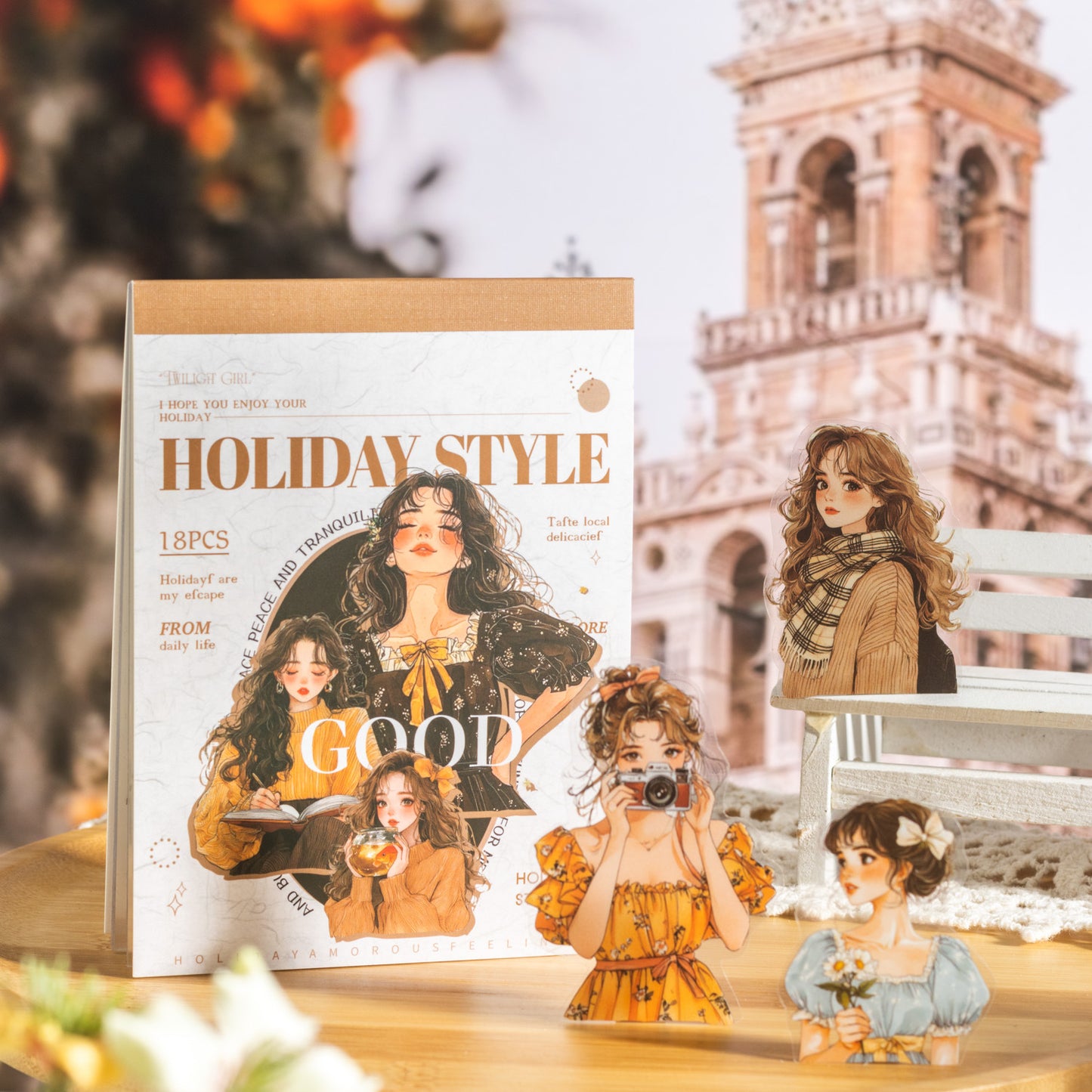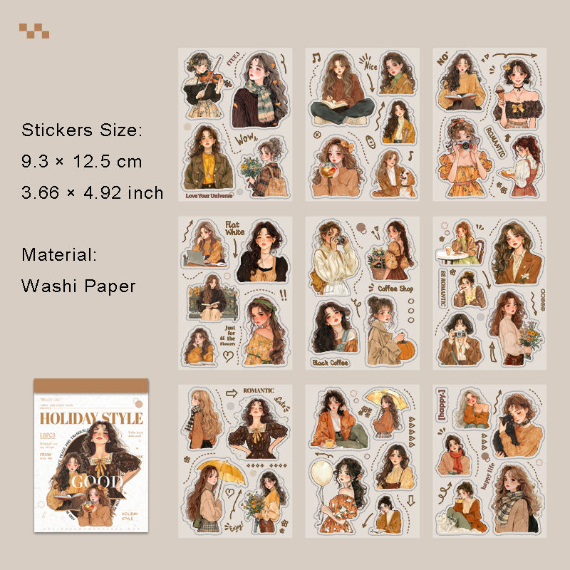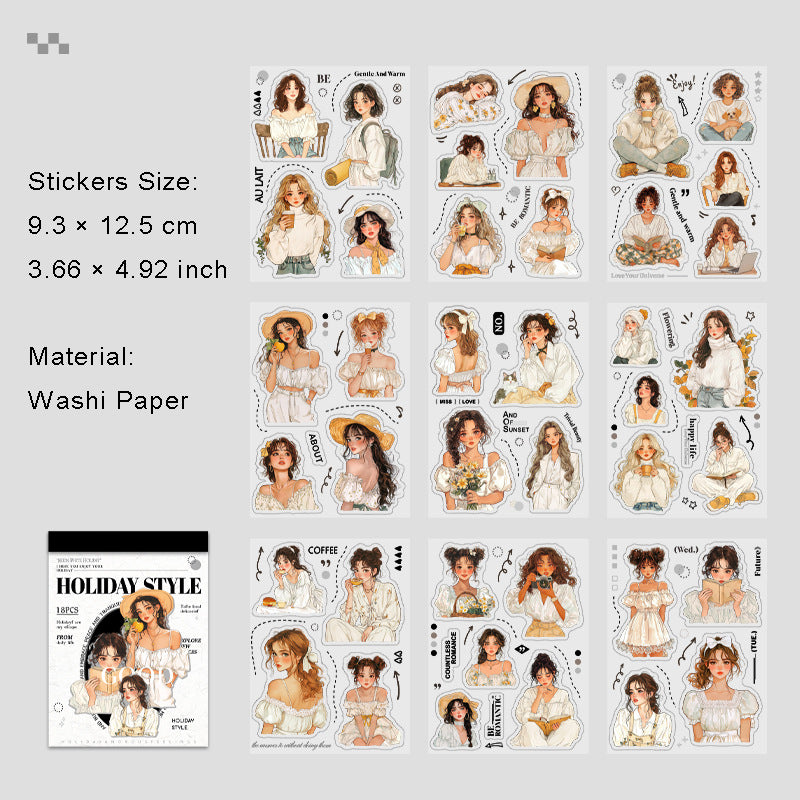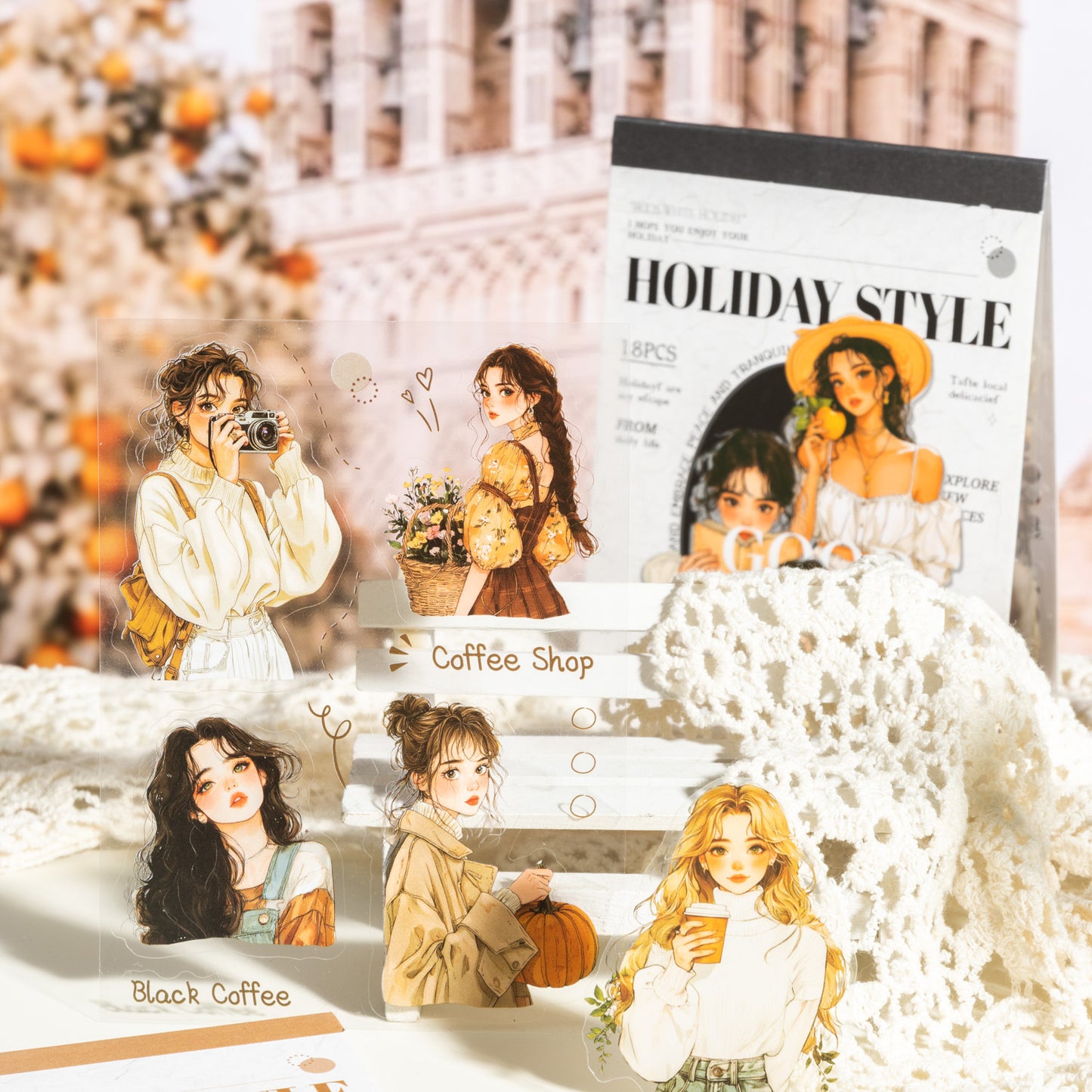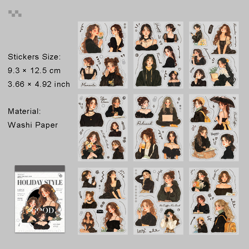 18 Sheets Holiday Girl PET Stickers Book JRFQ