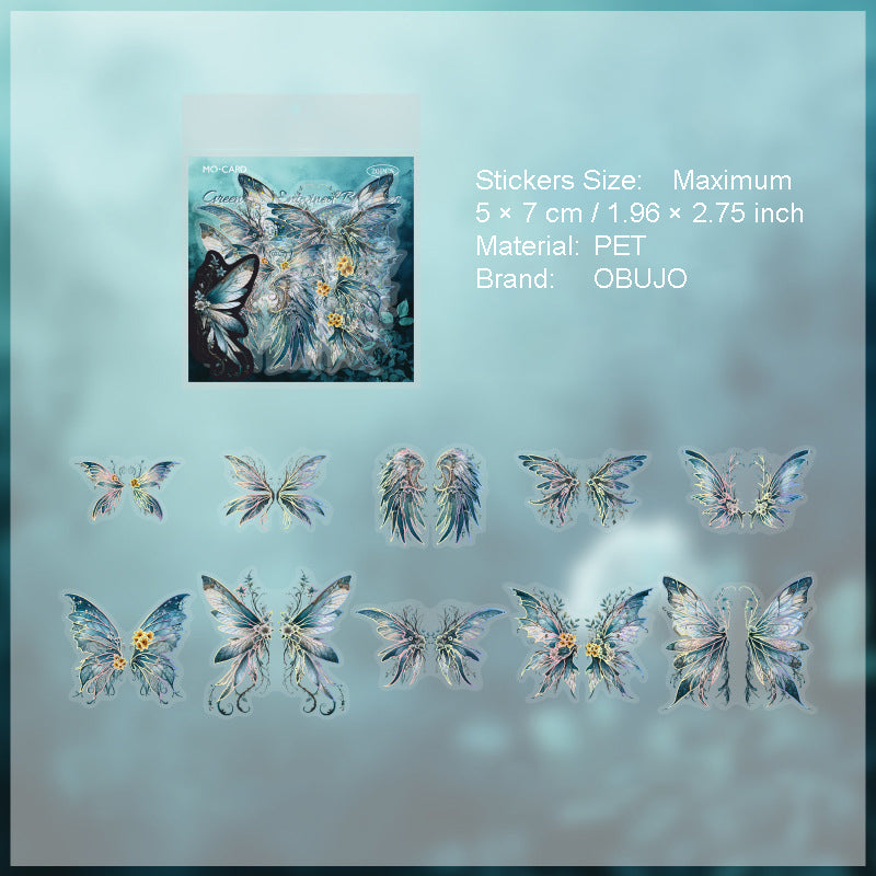20 Pcs Glitter Butterfly Feather PET Stickers LKJY