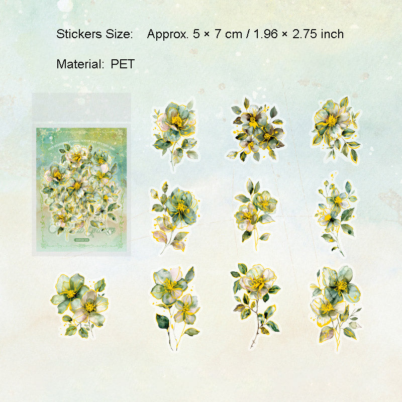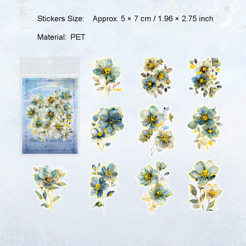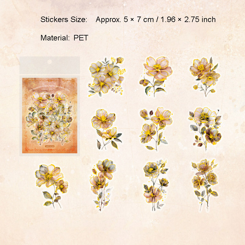 20 Pcs Glitter Flower PET Stickers FHZX
