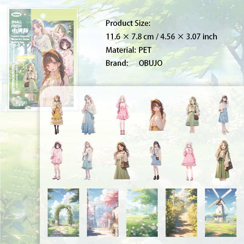 34 Pcs Urban Girl Stickers and Journal Paper Kit SSZZ