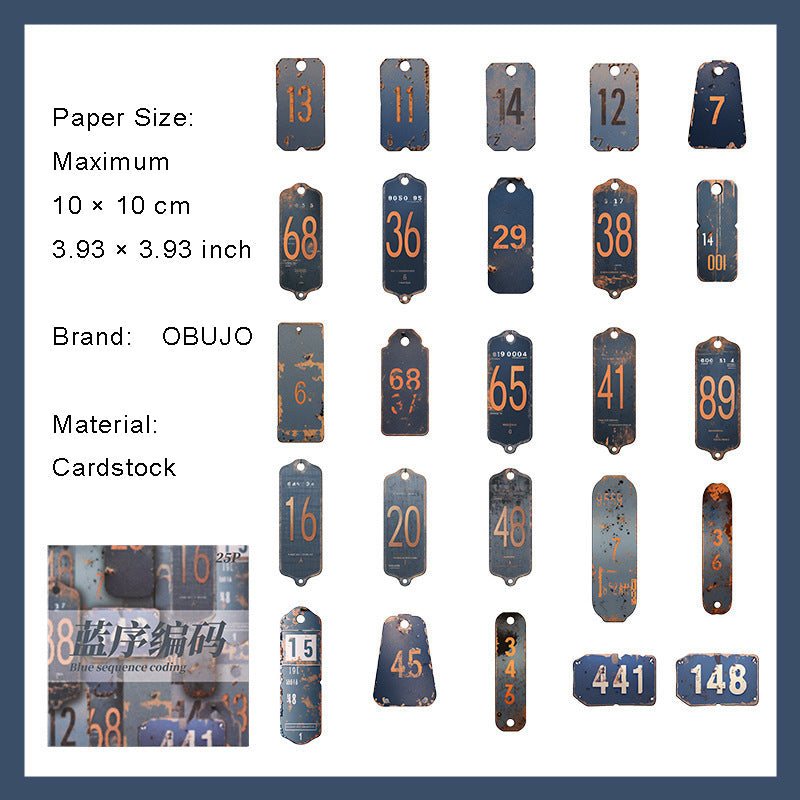 25 Pcs Vintage Number Label Cardstock Paper SZJG