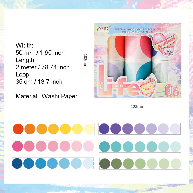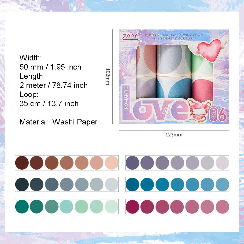 6 Rolls Morandi Dot Washi Plannrr Stickers Tape LMXC