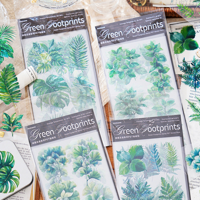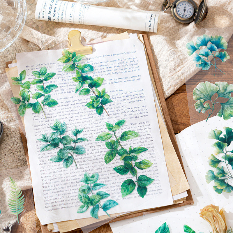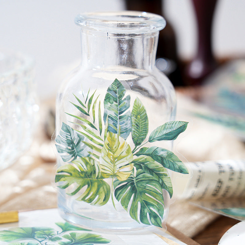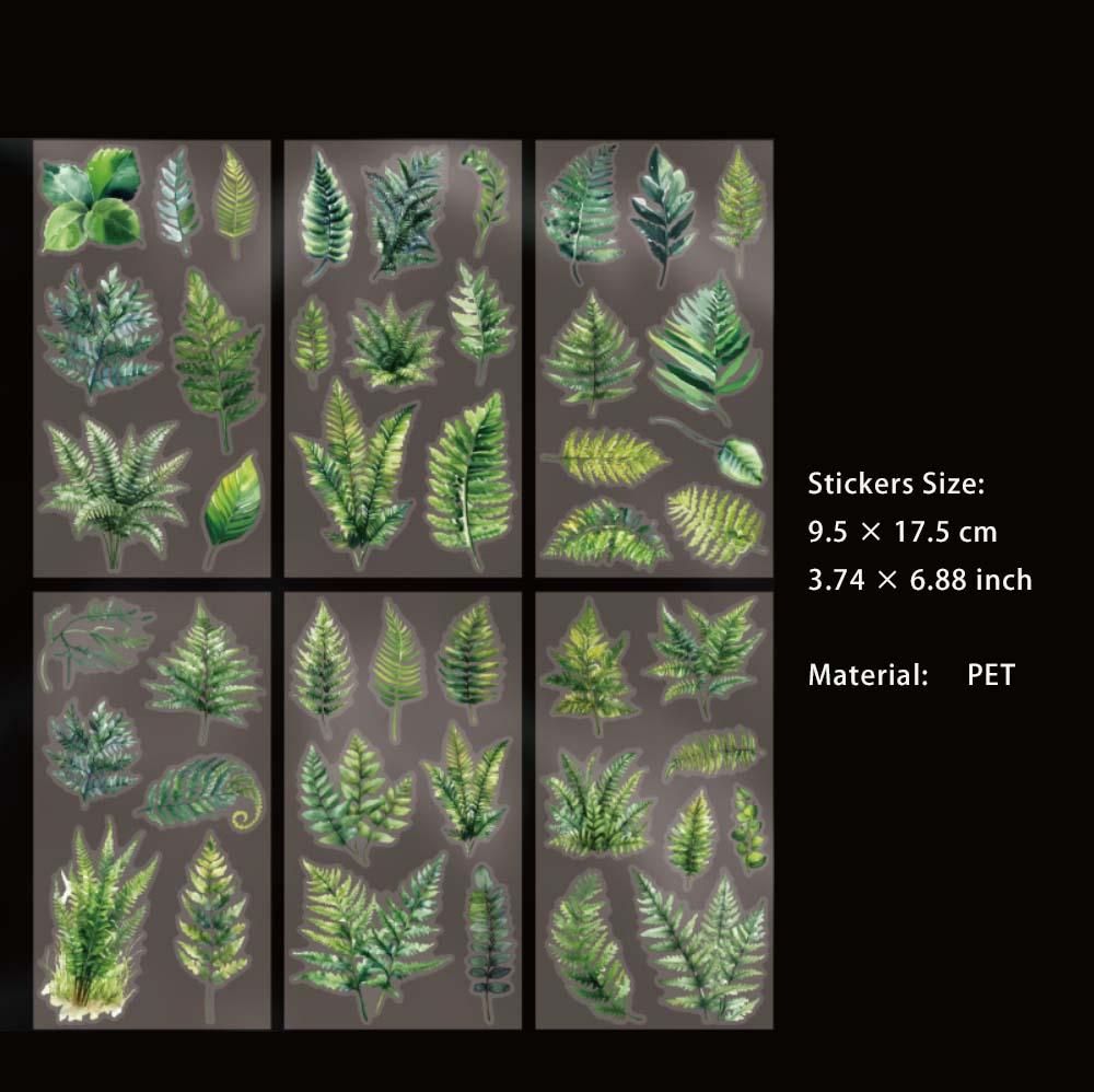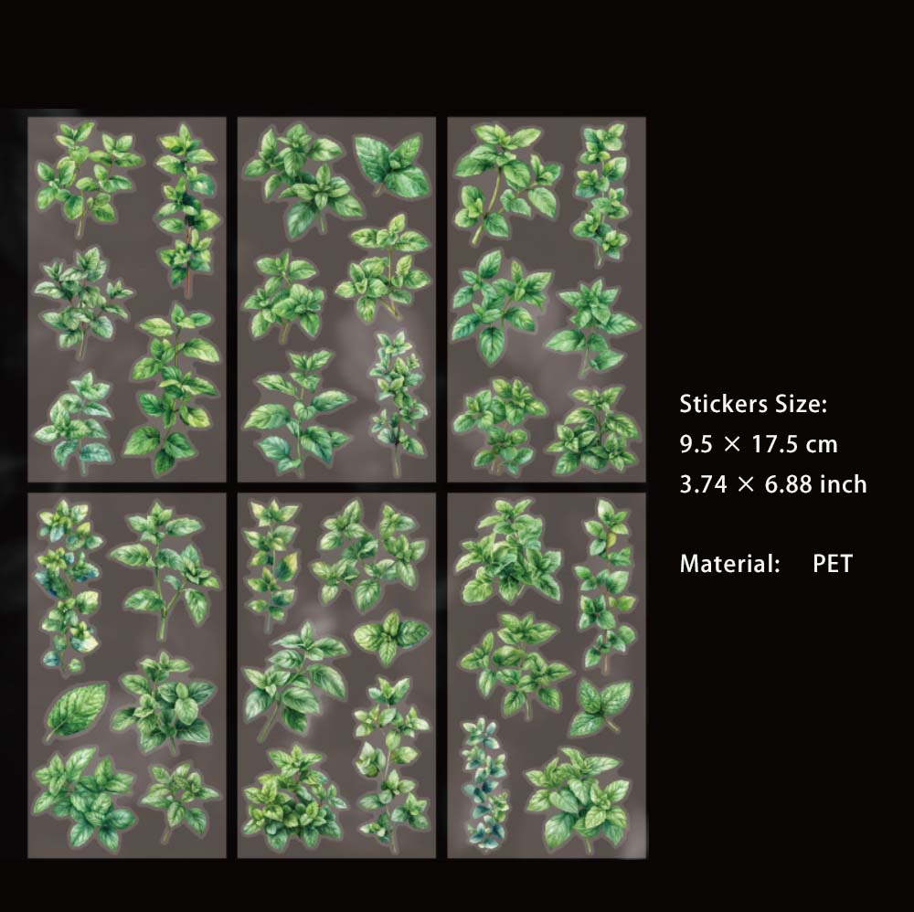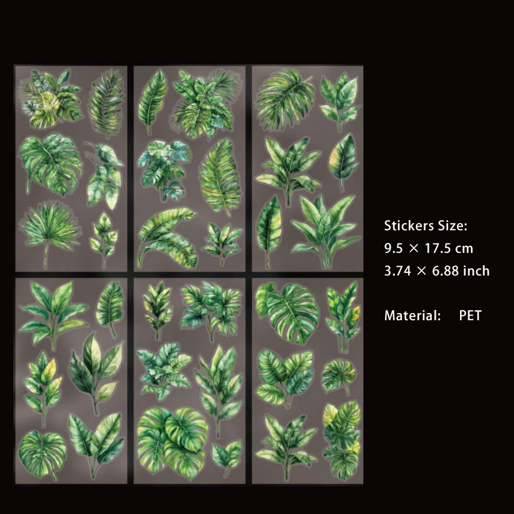 6 Sheets Green Leaf PET Stickers LYZJ