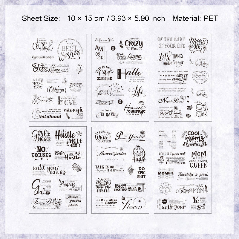 Package Includes: 1 Pack of 6 sheets stickers with 6 patterns