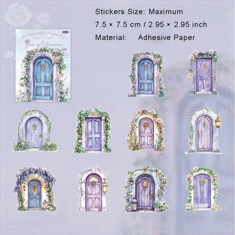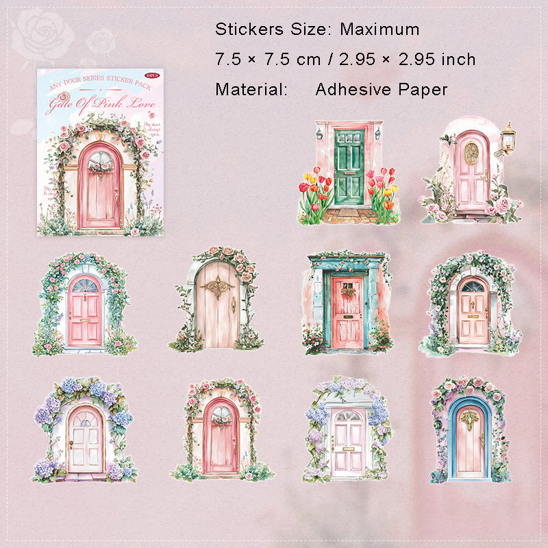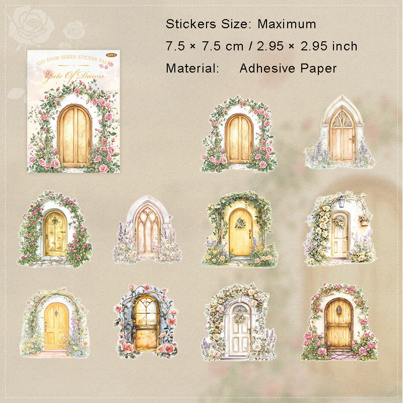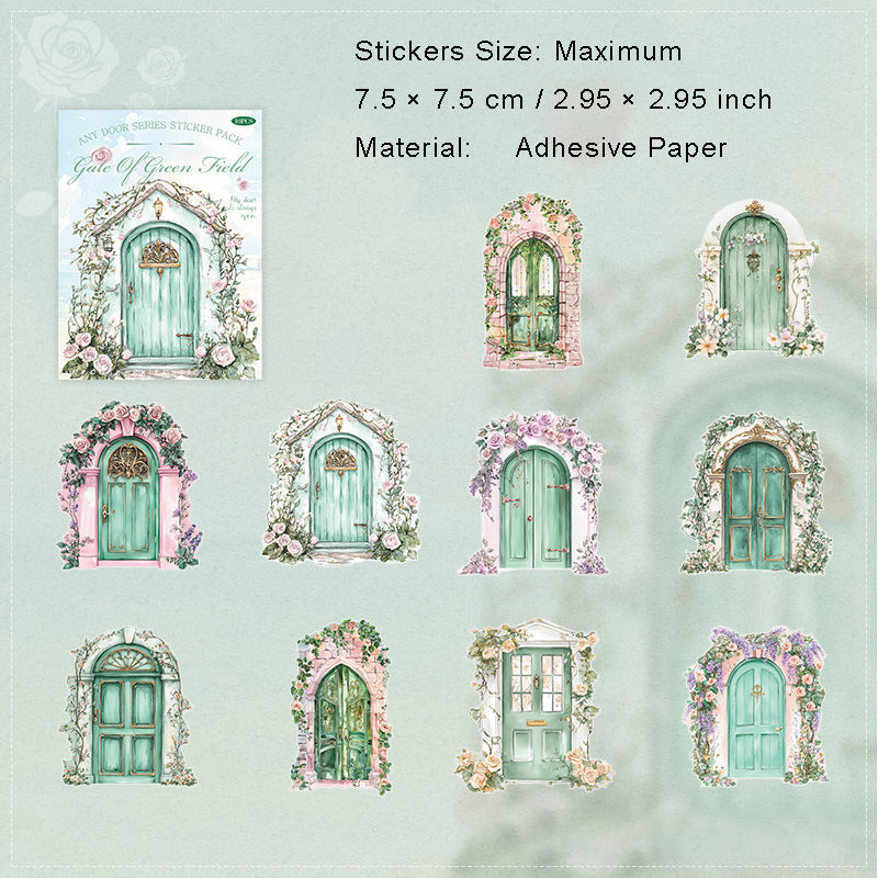 10 Pcs Floral Wooden Door Cardstock Stickers RYMX
