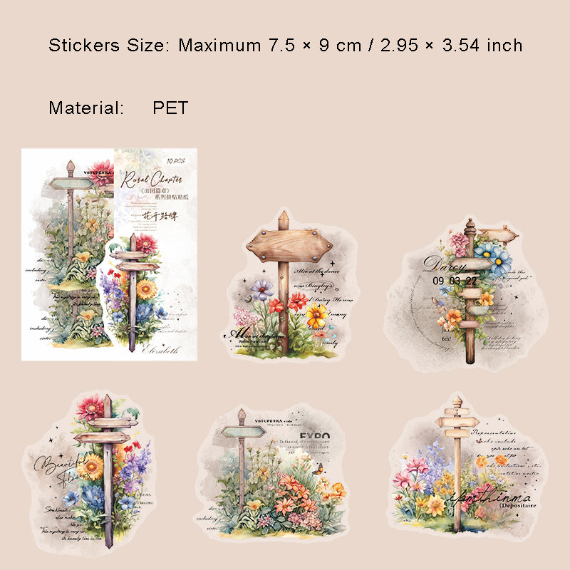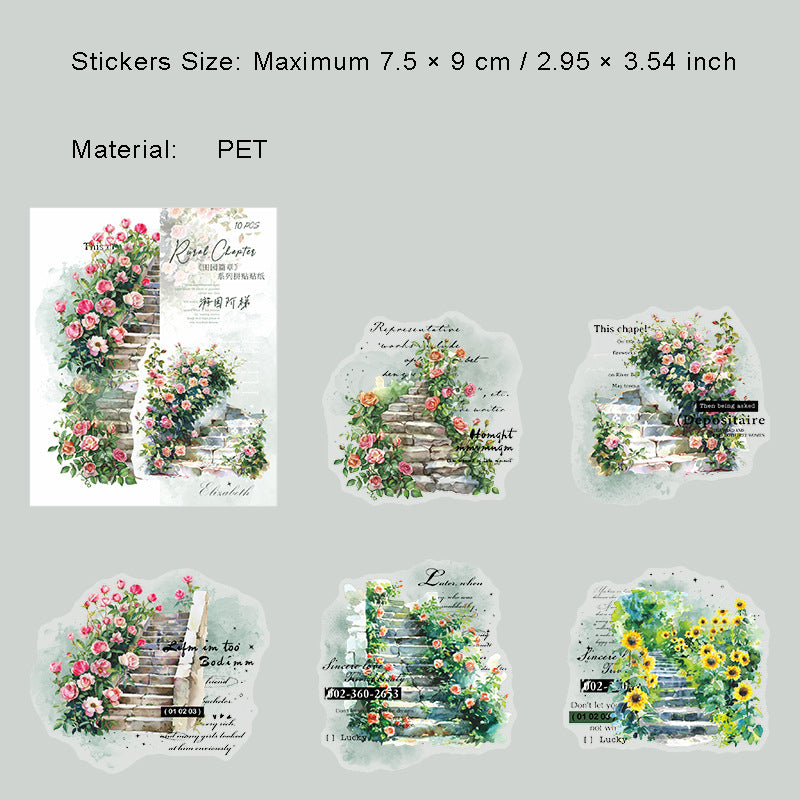 10 Pcs Flower Manor PET Stickers TYPZ