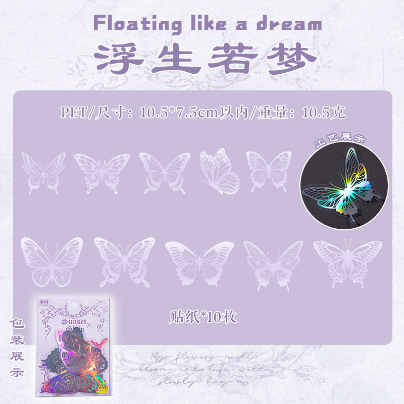 10 Pcs Laser PET Butterfly Stickers