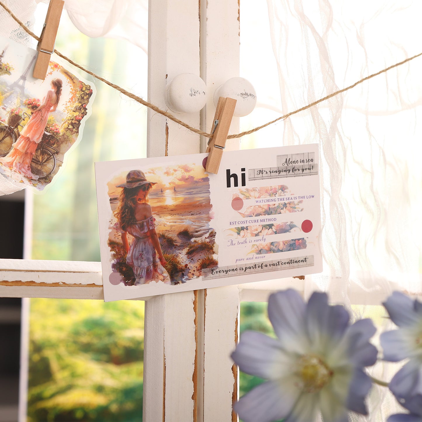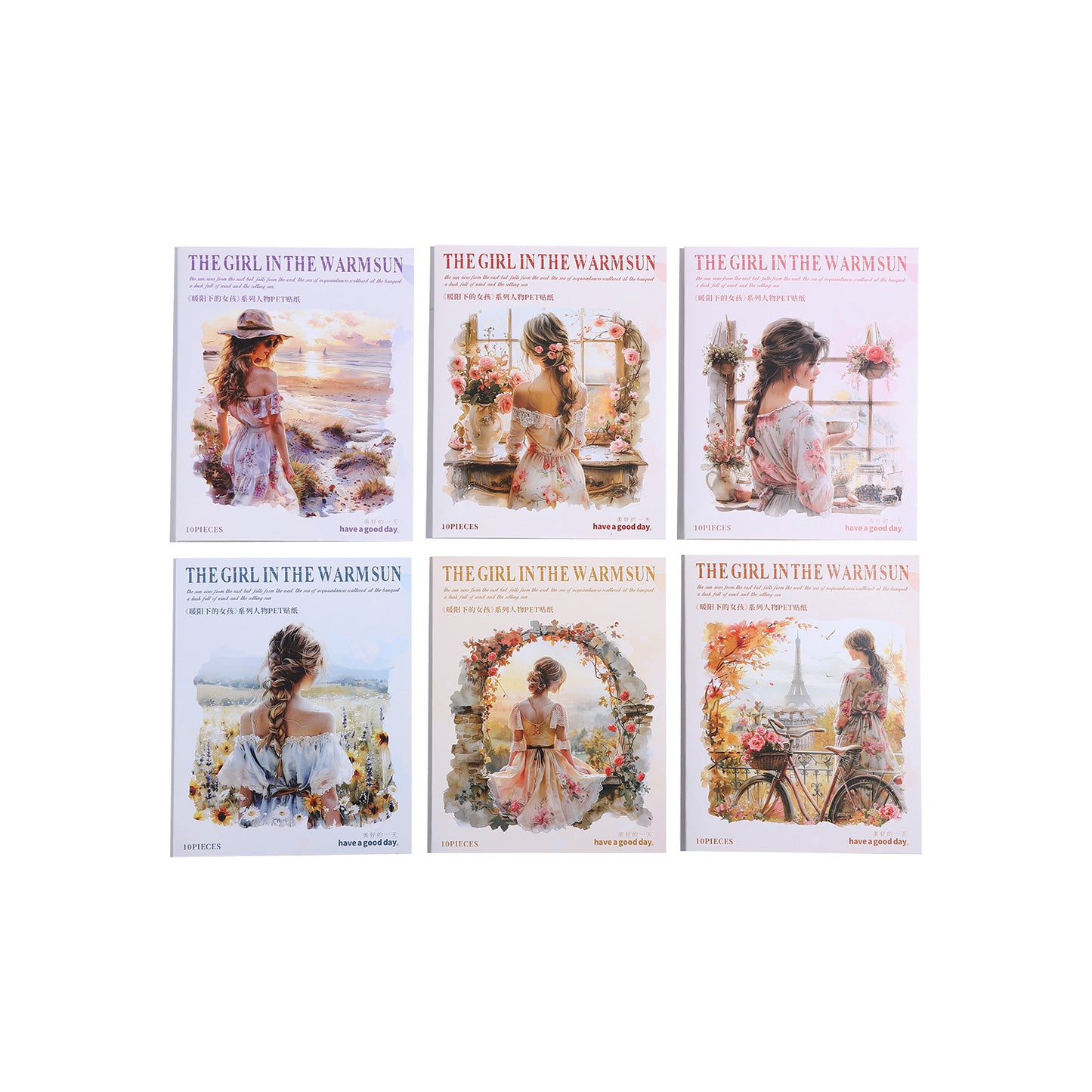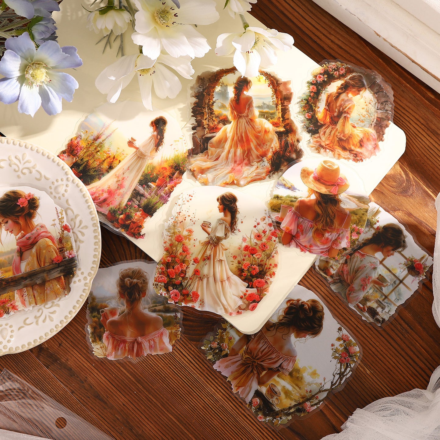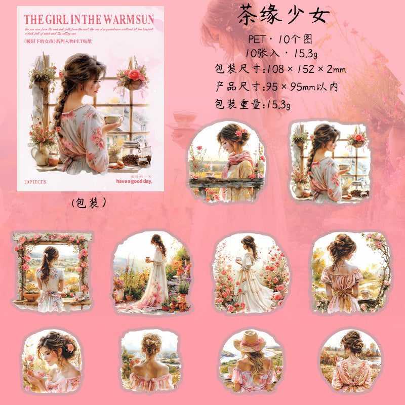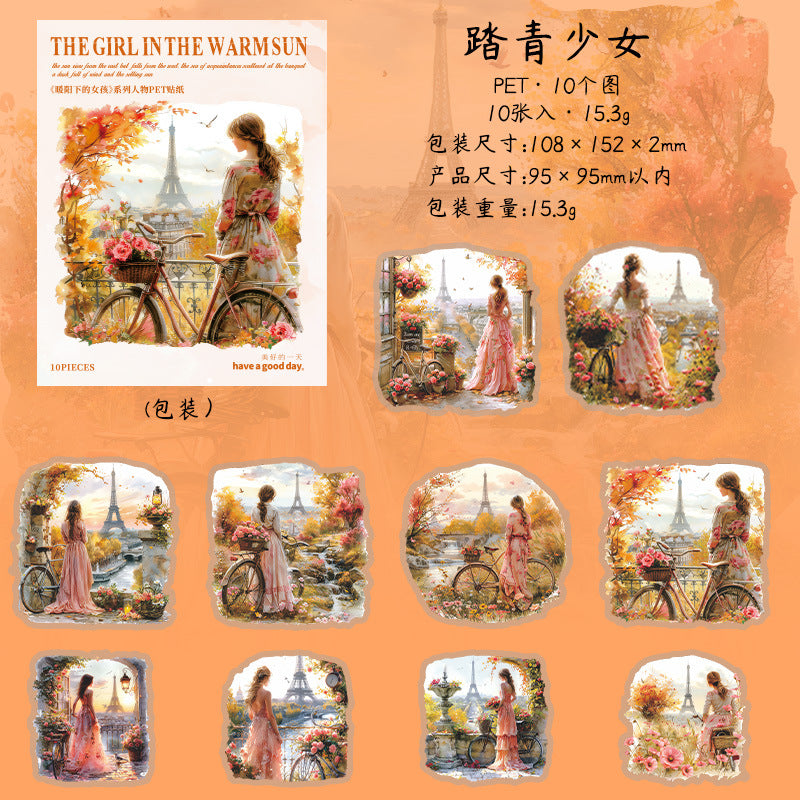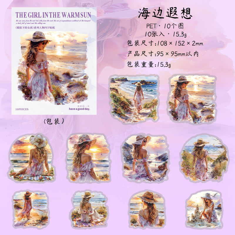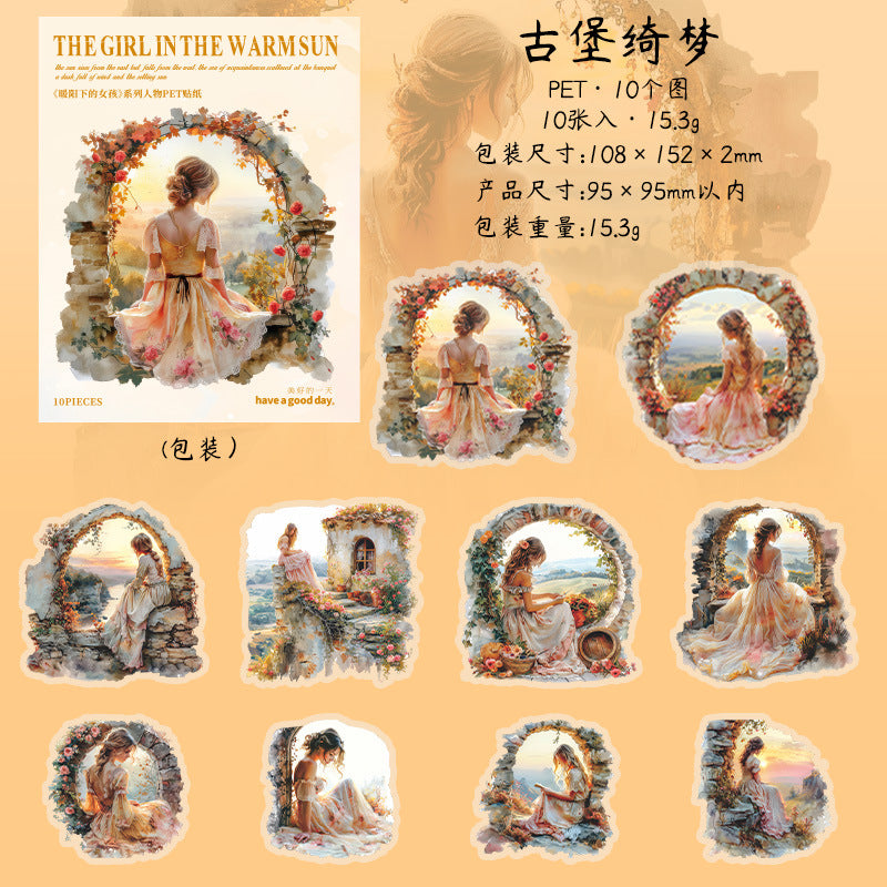 10 Pcs Vintage Sunset Girl PET Stickers NYXSN
