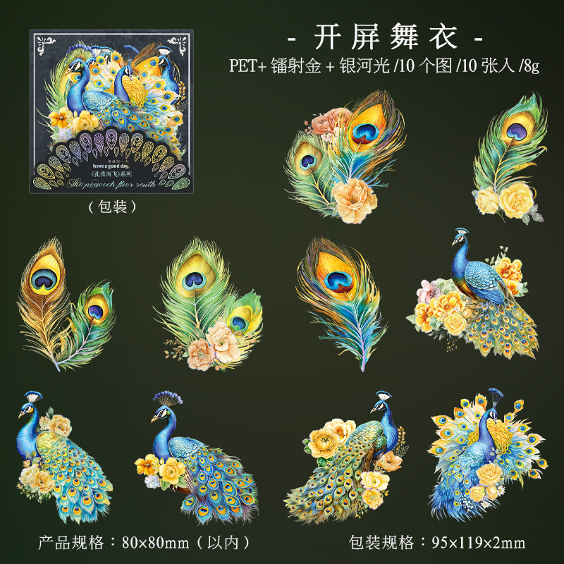 10pcs PET Peacock Stickers KQNF