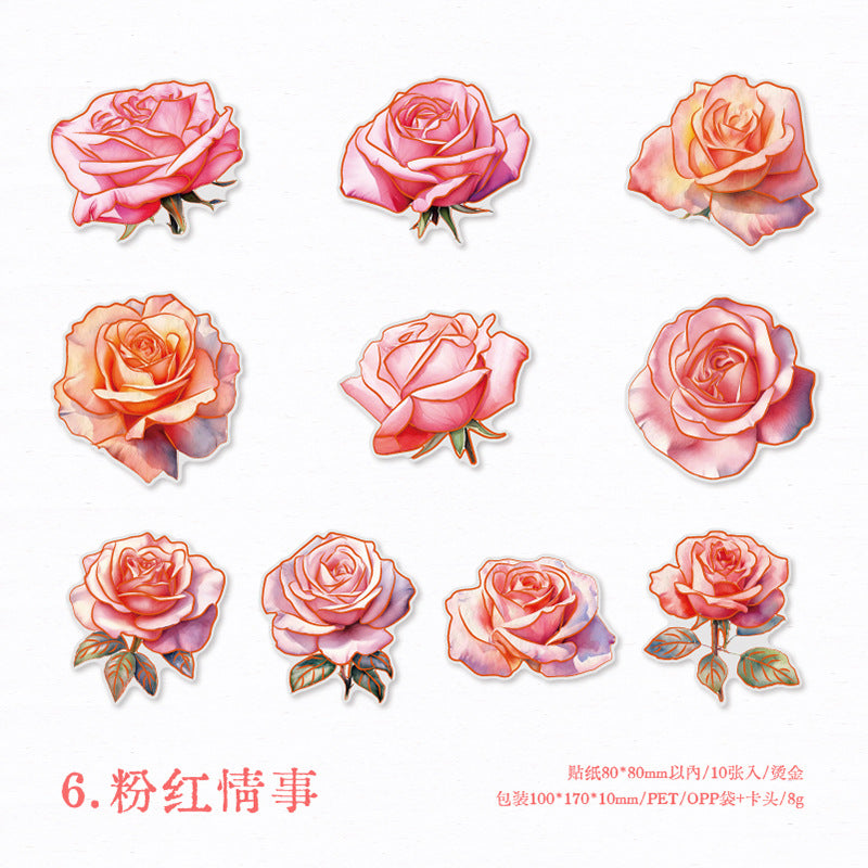 10pcs PET Rose Stickers MGWH
