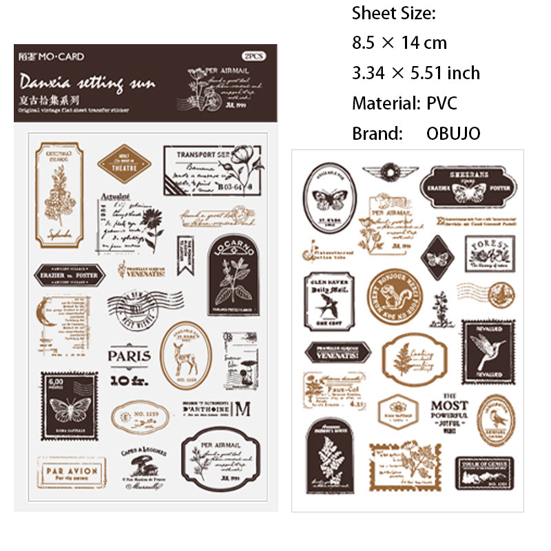 2 Sheets Botanical Post Stamp Transfer Stickers FGSJ