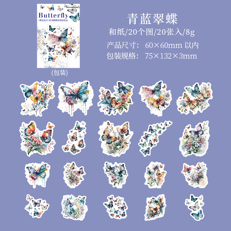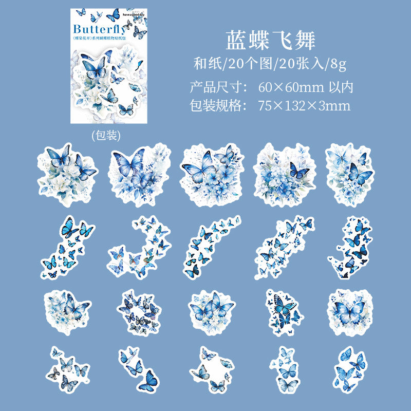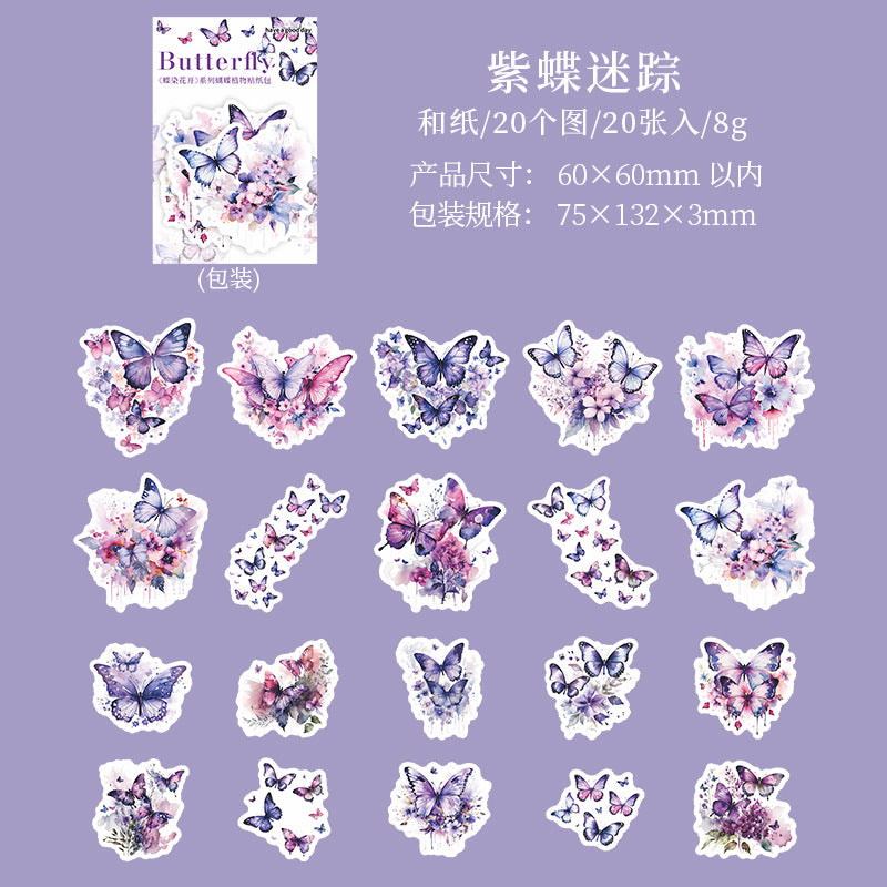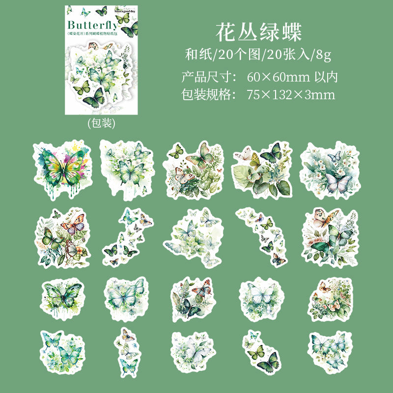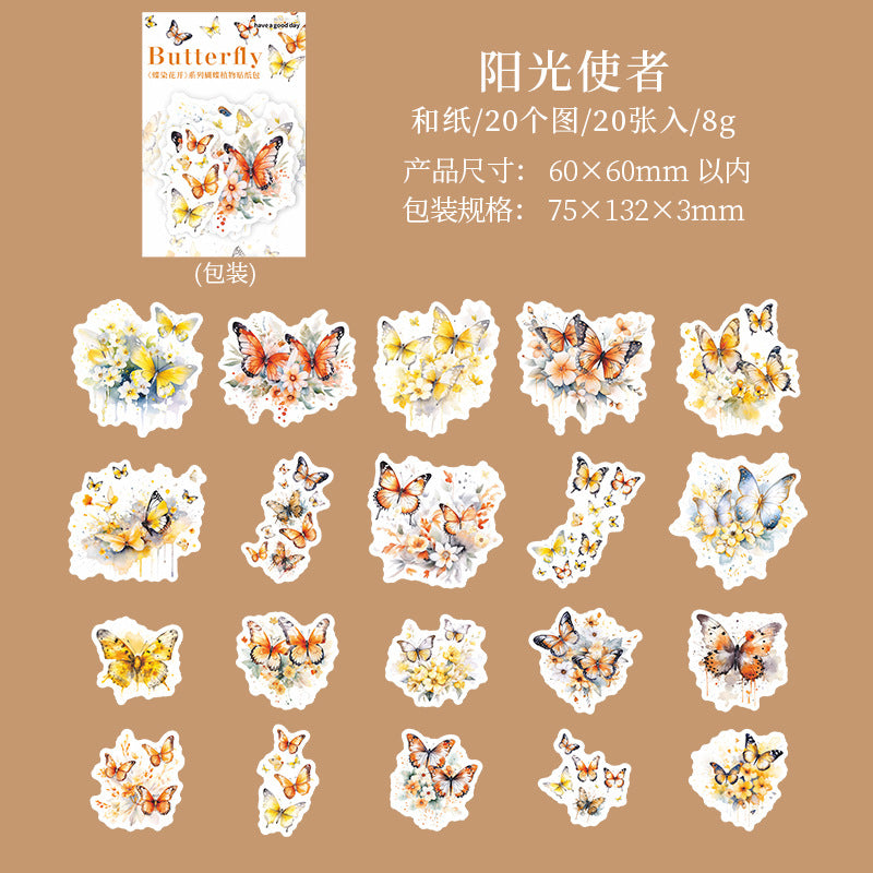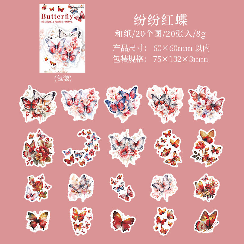 20 Pcs Flower and Butterfly Washi Stickers DRHK