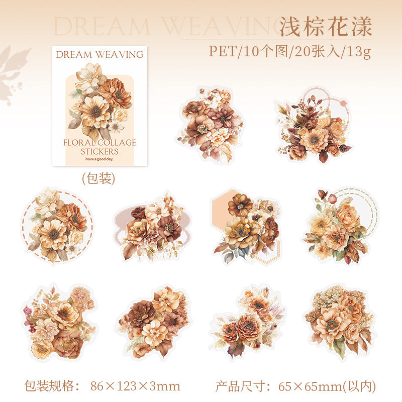 20 Pcs Flowers PET Stickers HMBZ