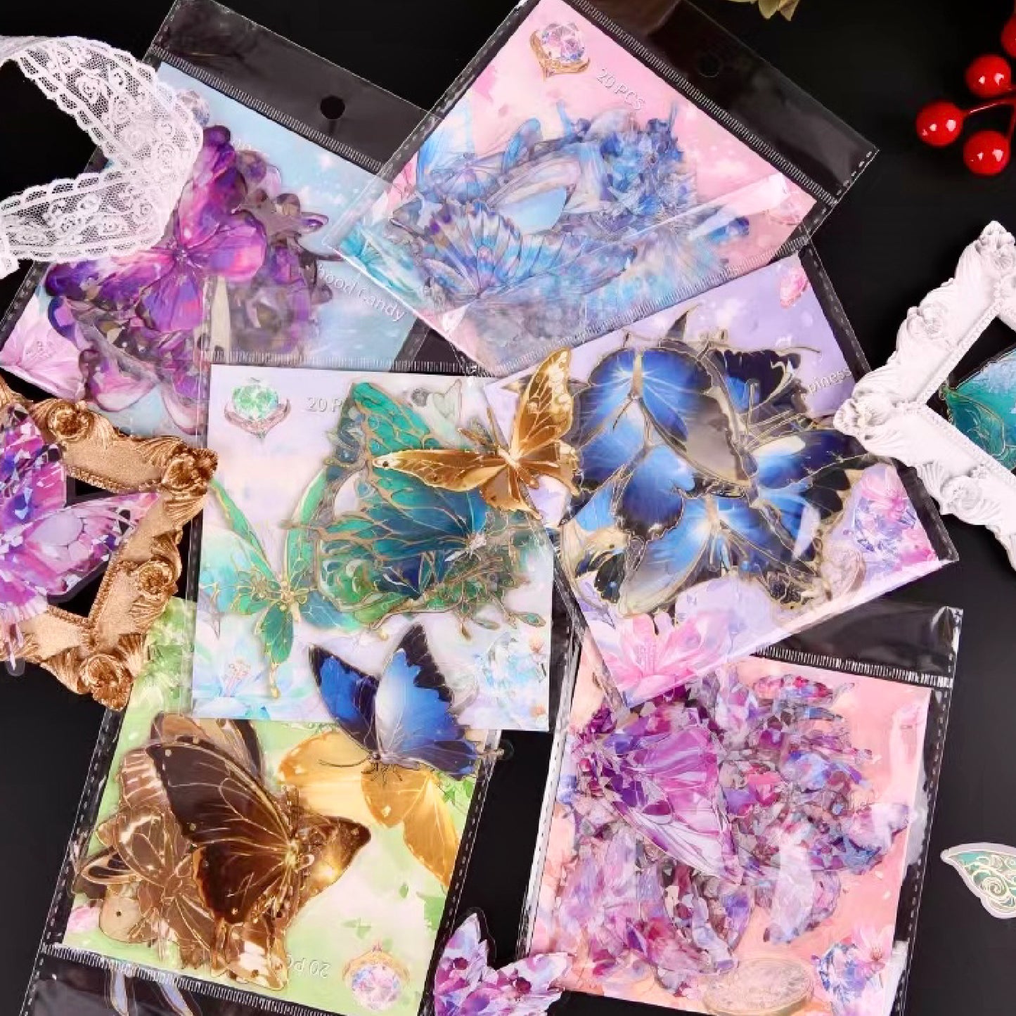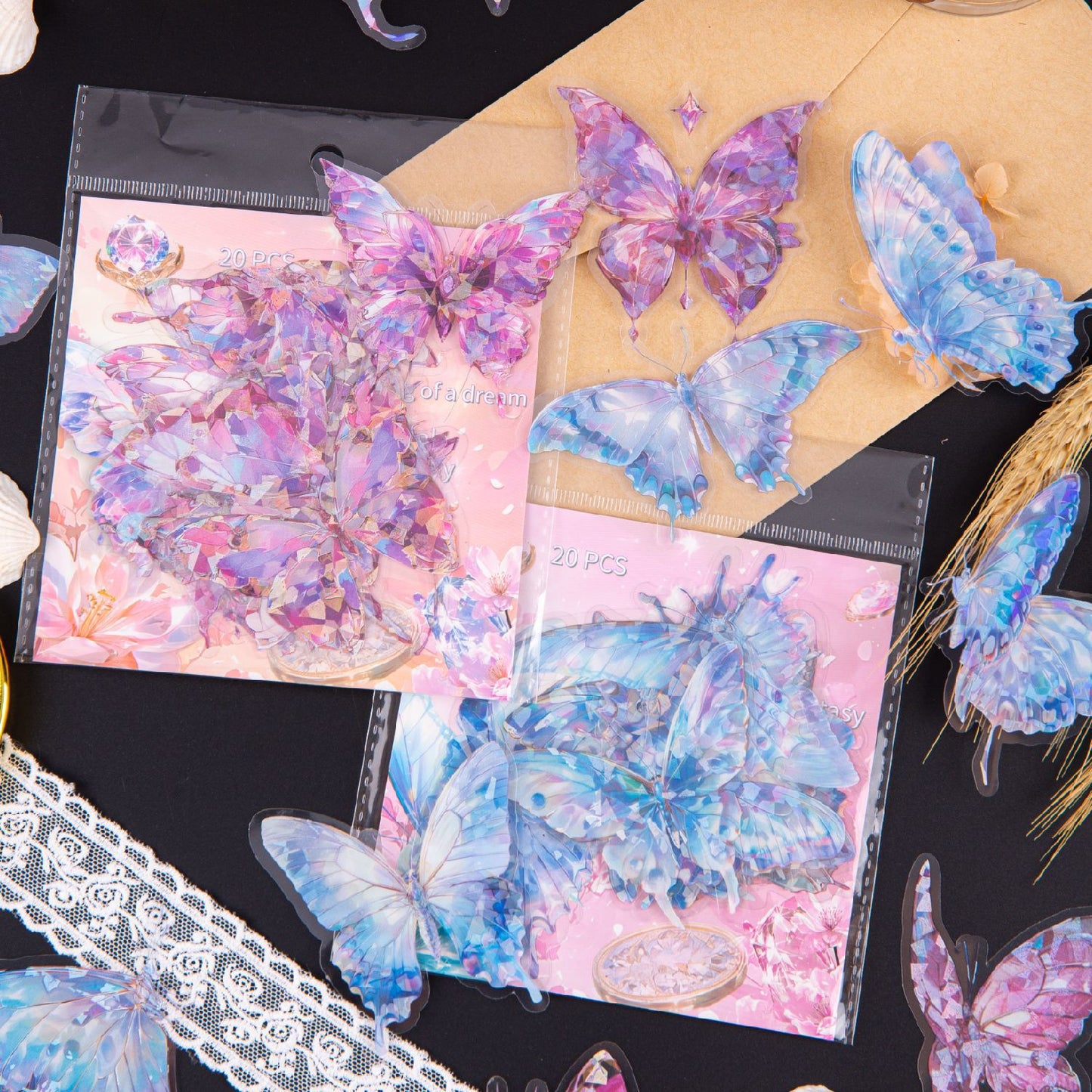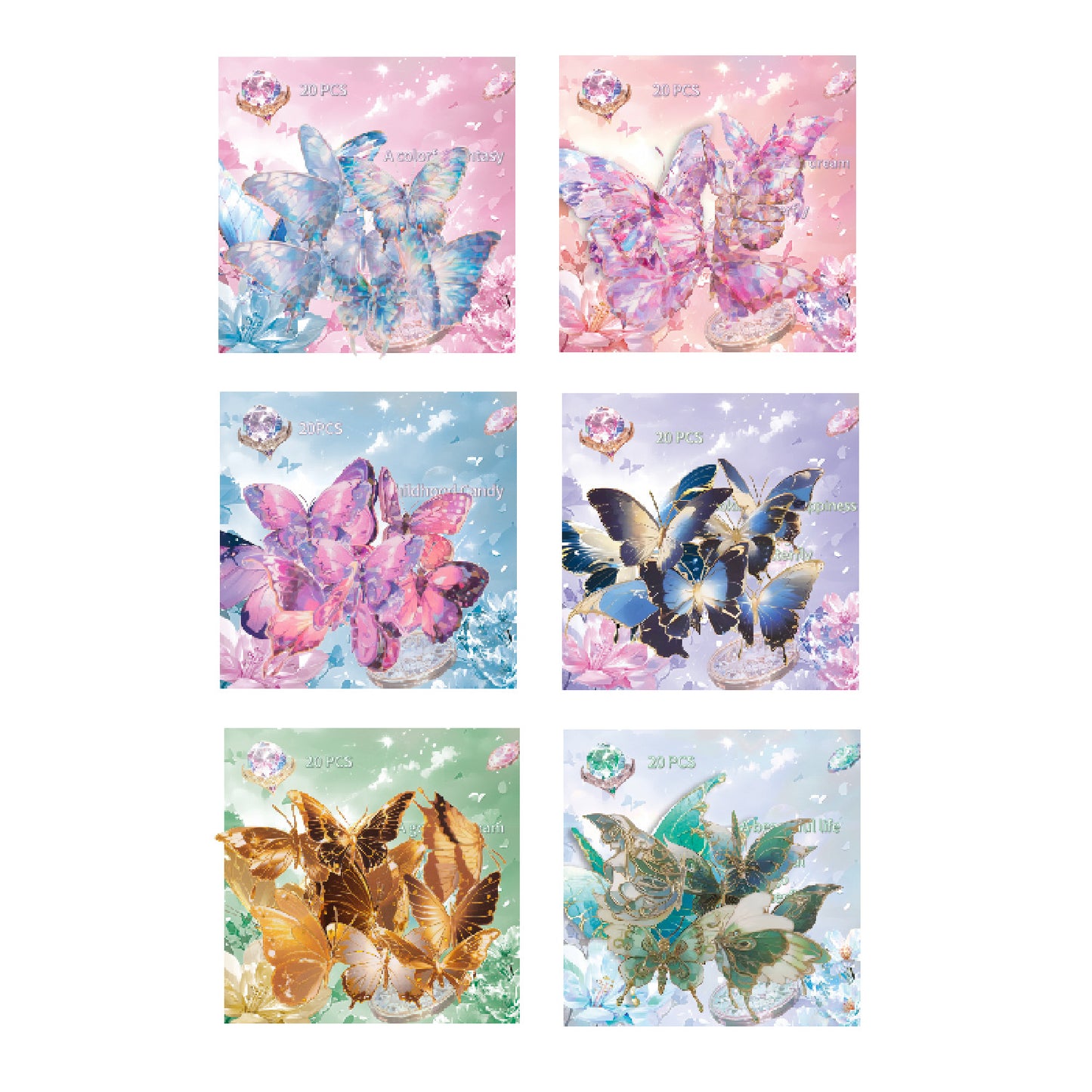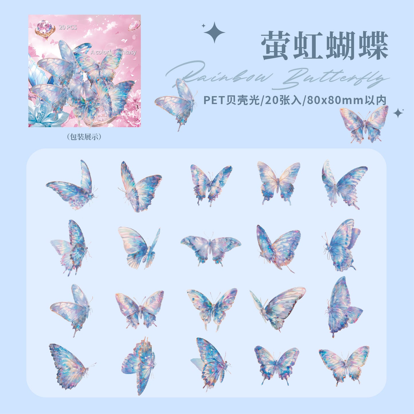 20 Pcs Holographic PET Butterfly Stickers PWLD