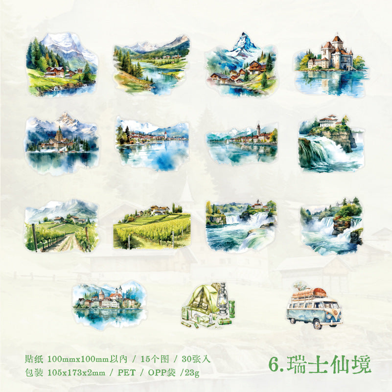 20 Pcs Travel Themed PET Stickers ZBSJ