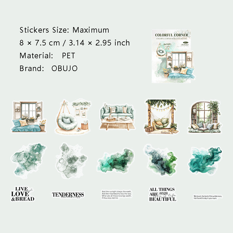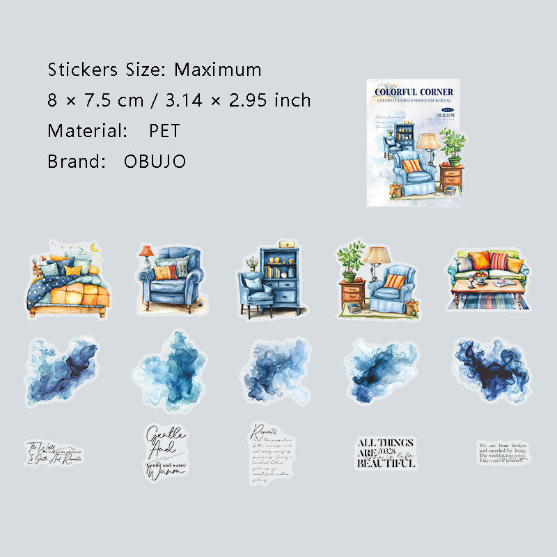 30 Pcs Watercolor Furniture Quote PET Stickers BLJL