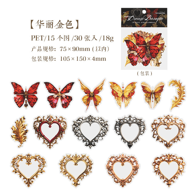You will get 1 pack of 30 pcs scrapbook supplies from Obujo