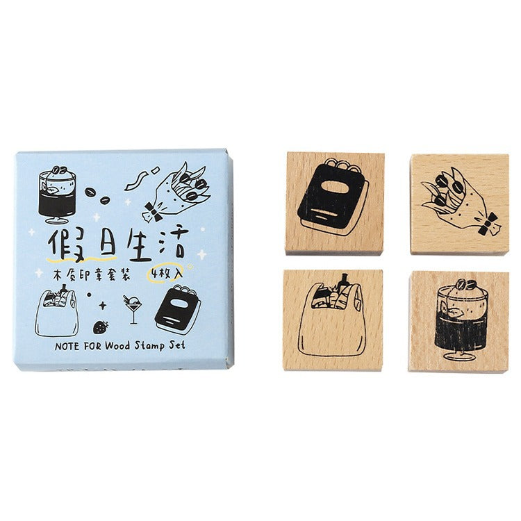 4 Pcs Wooden Stamp Kit YJZJ