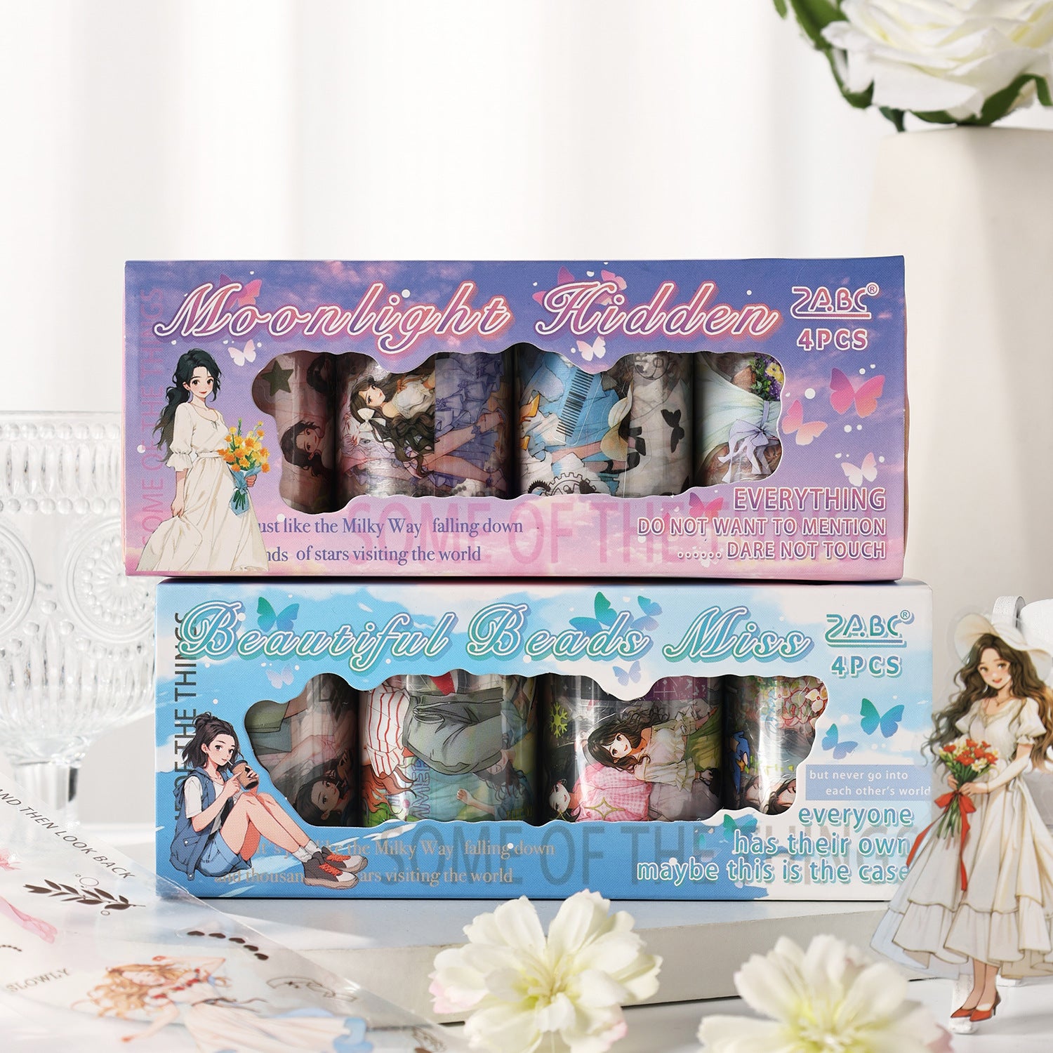 4 Rolls Cute Girl PET Tapes Set ZNLT