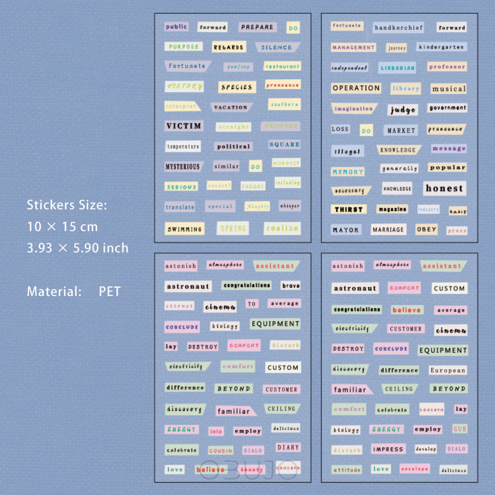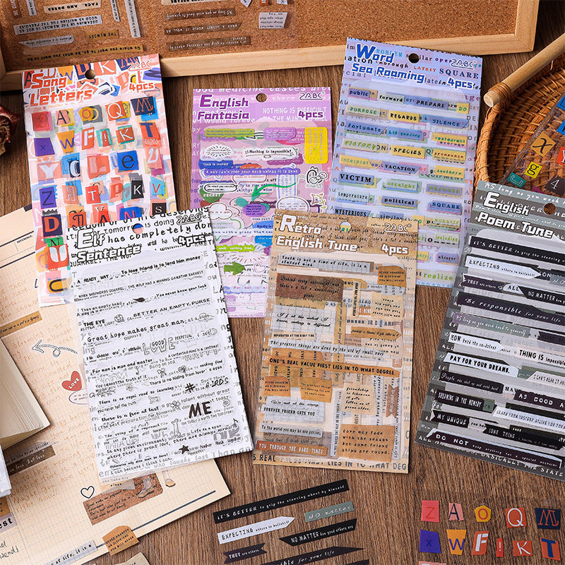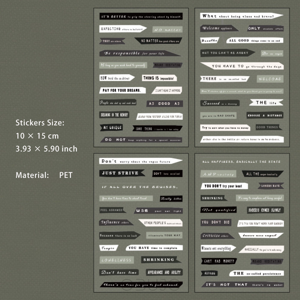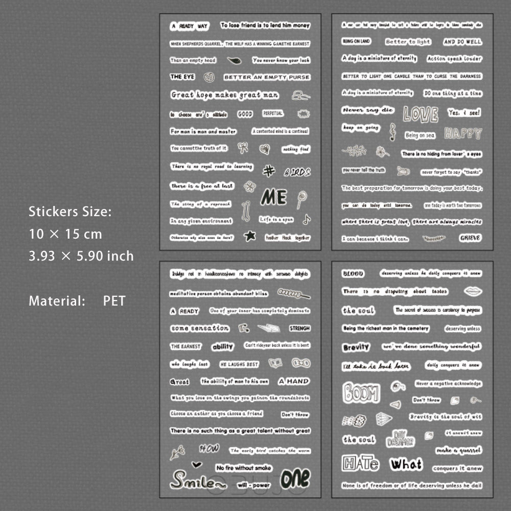 4 Sheets Letter and Quote PET Stickers YZDY