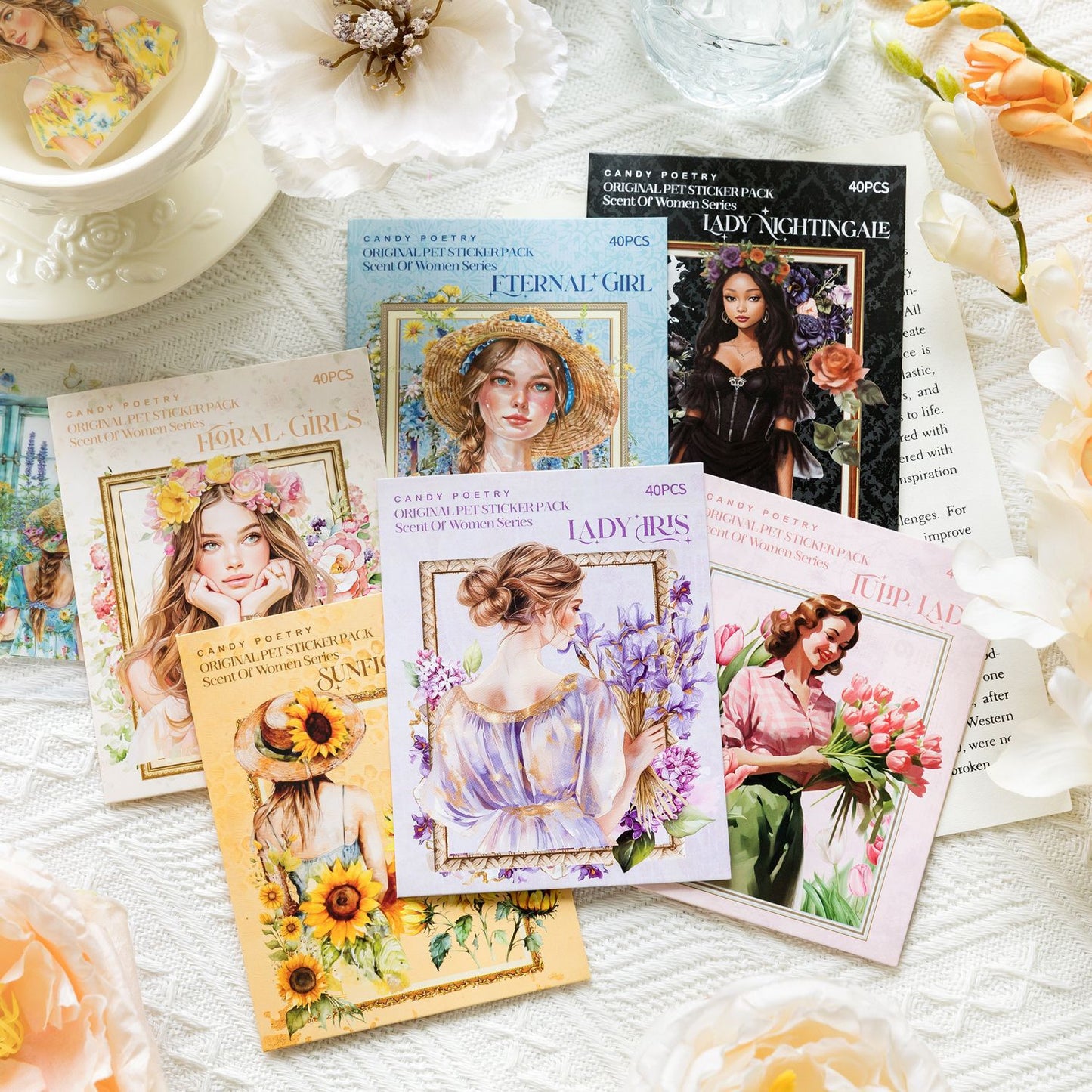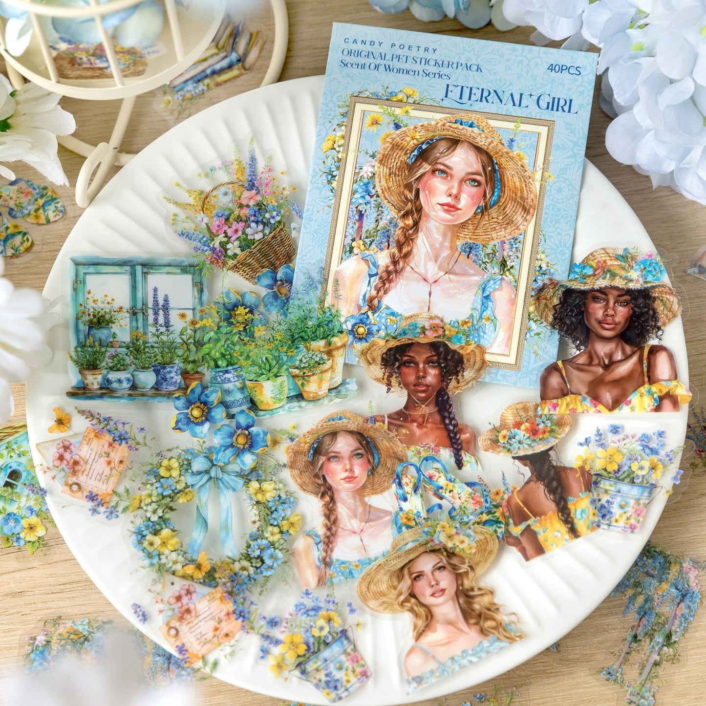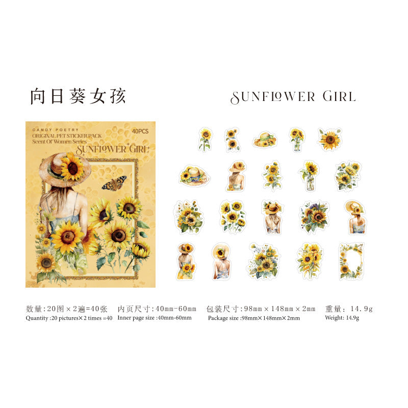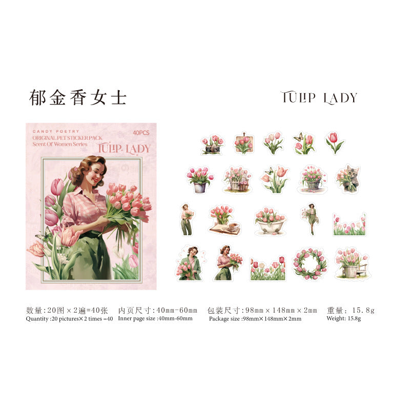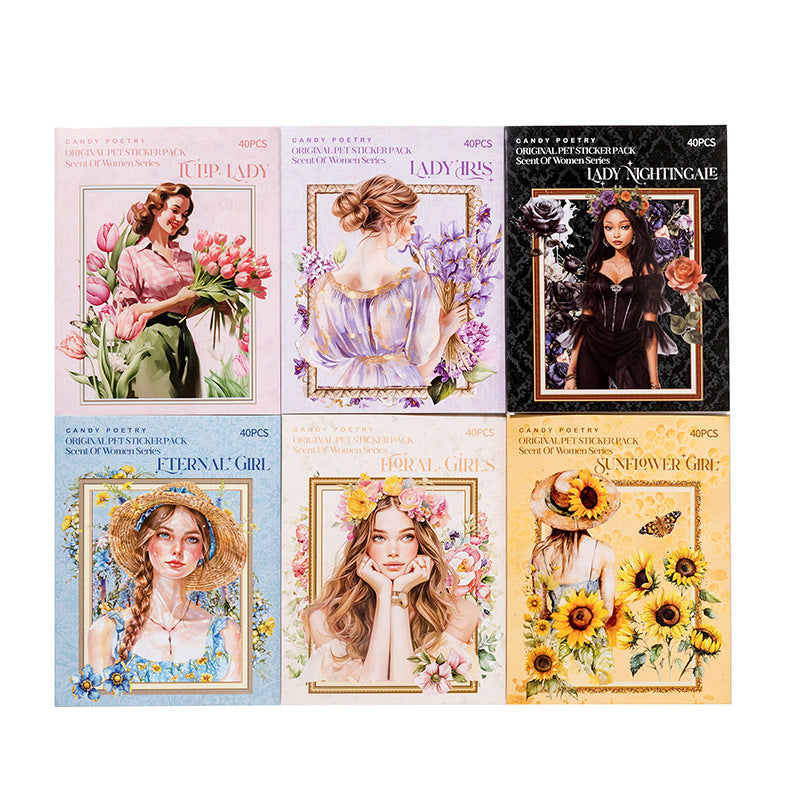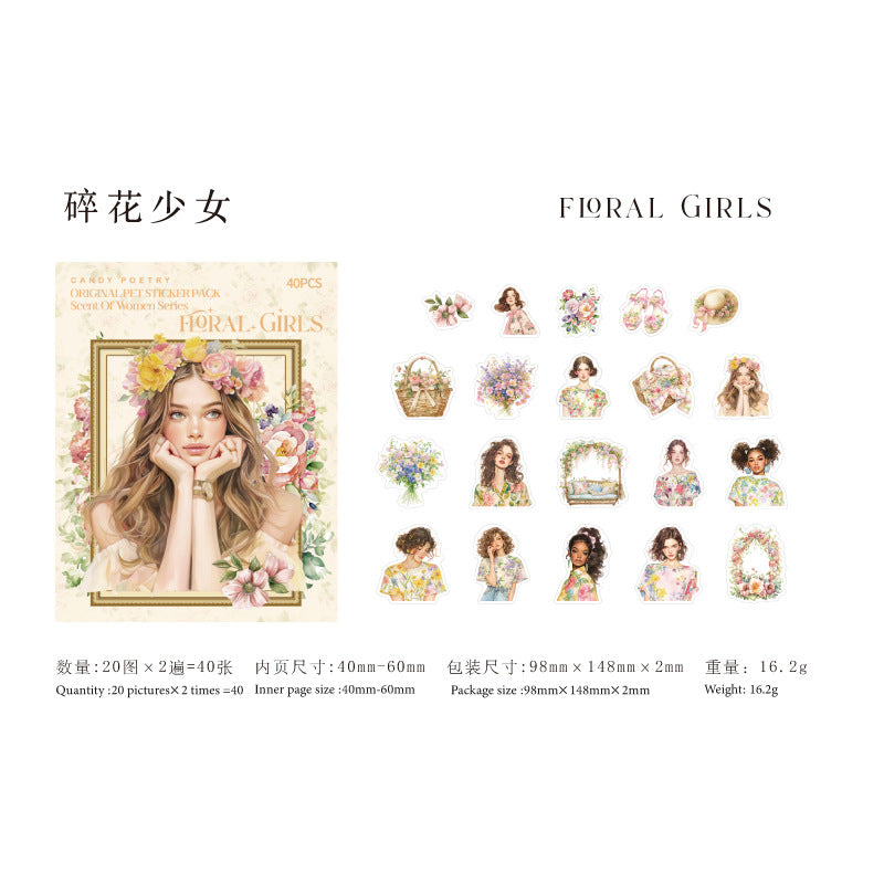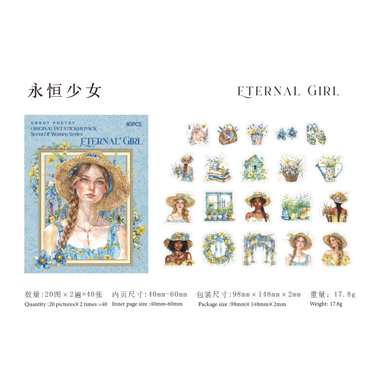 40 Pcs PET Garden ang Girl PET Stickers WXSNR