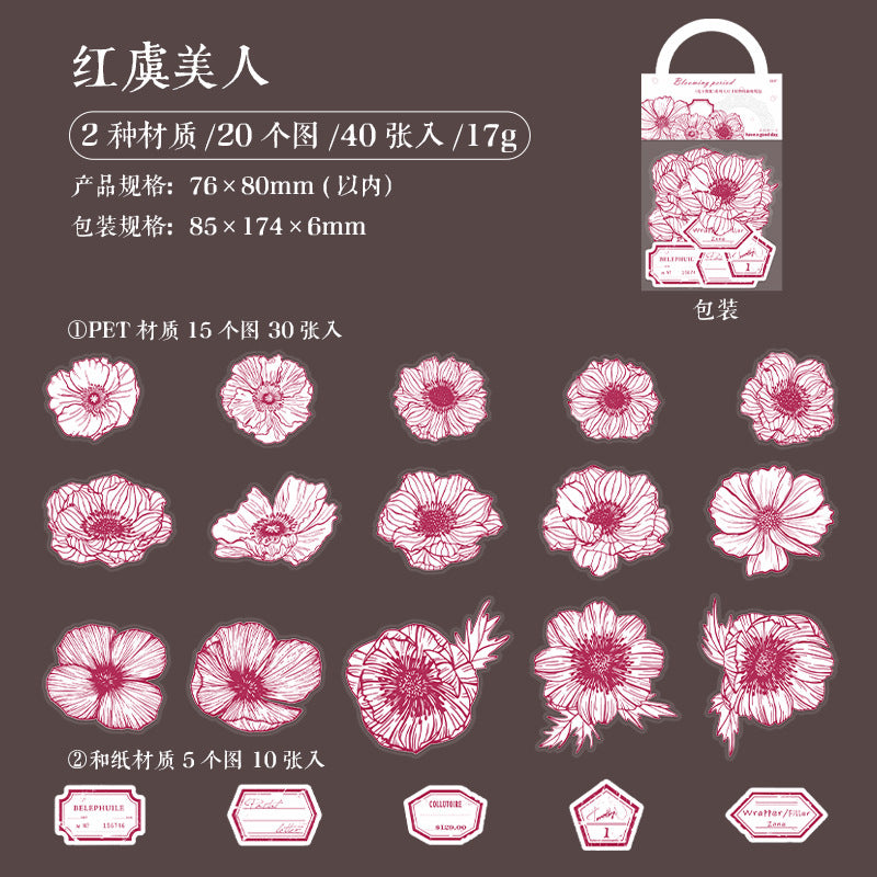 You will get 1 pack of 40 pcs scrapbook supplies from Obujo