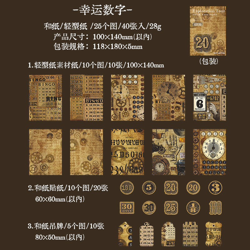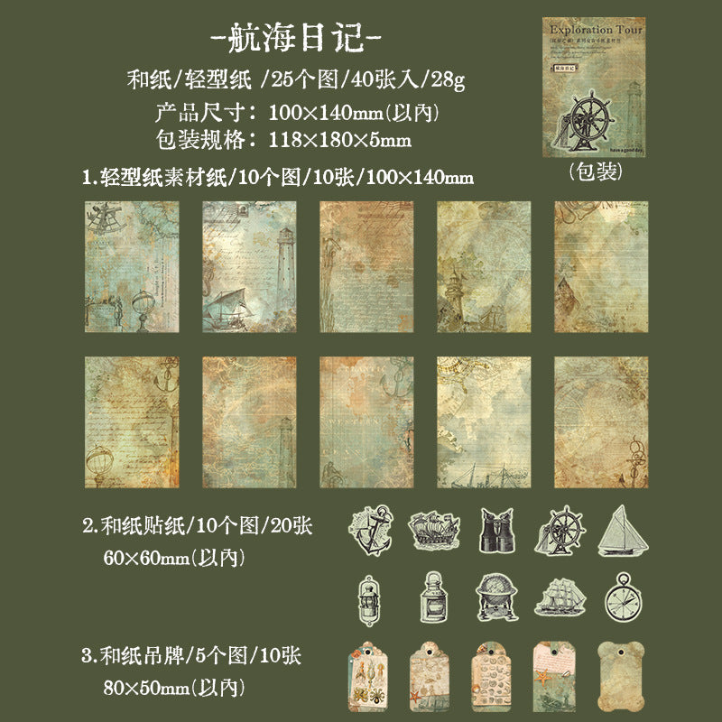 You will get 1 pack of 40 pcs scrapbook supplies from Obujo