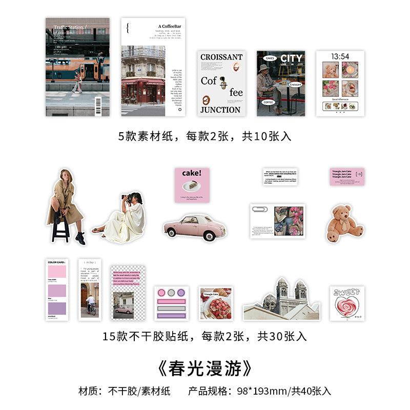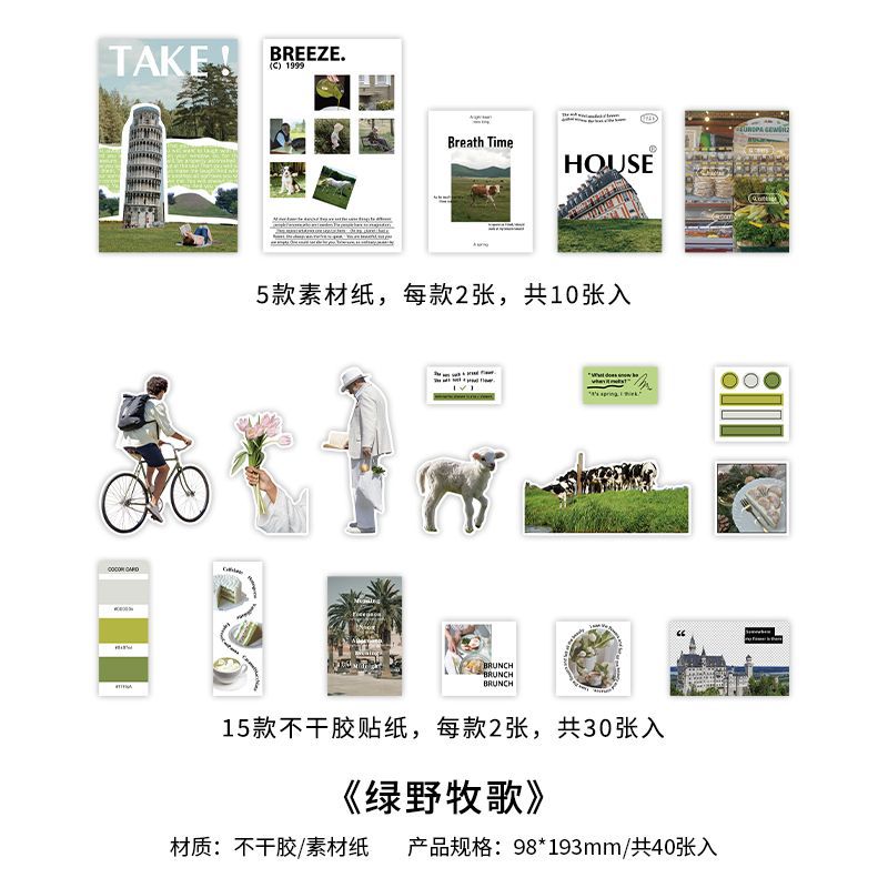 You will get 1 pack of 40 pcs scrapbook supplies from Obujo