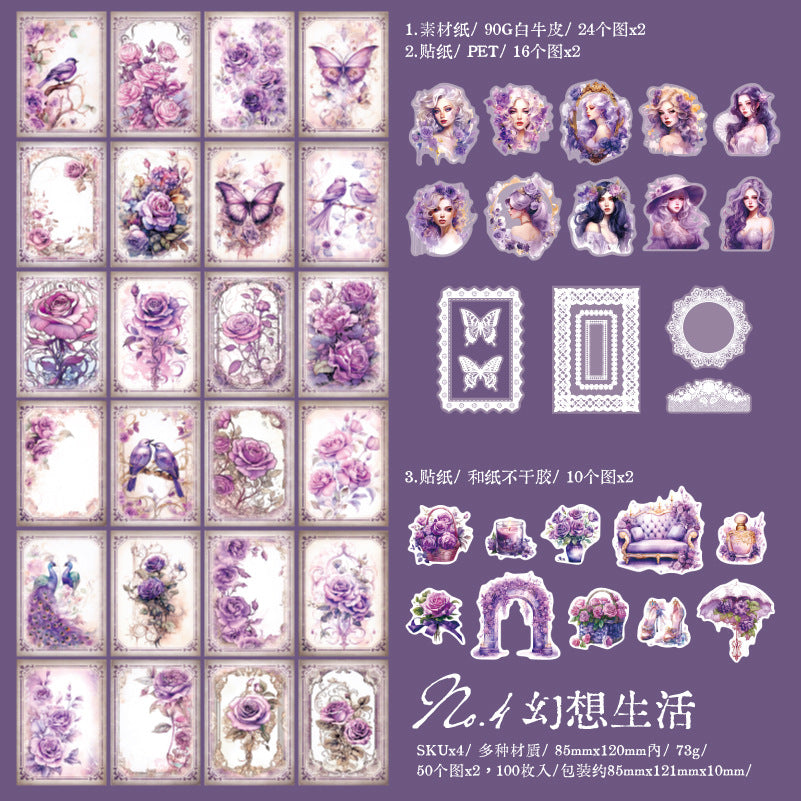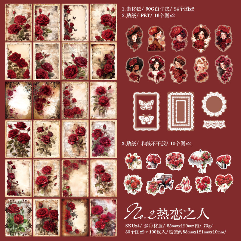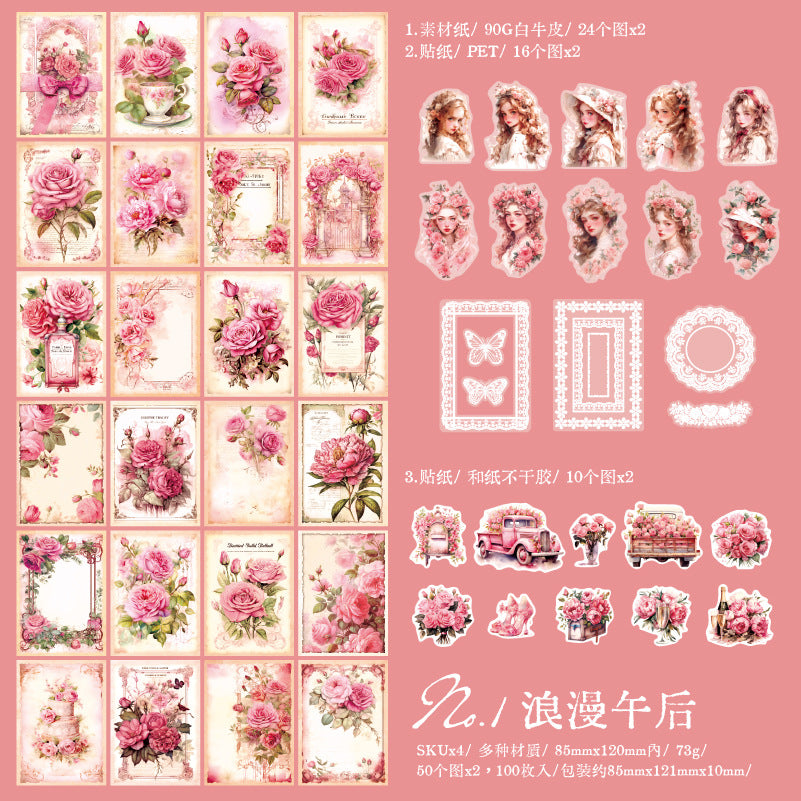 50 Pcs Rose Theme Junk Journal Supplies Kit AYMG