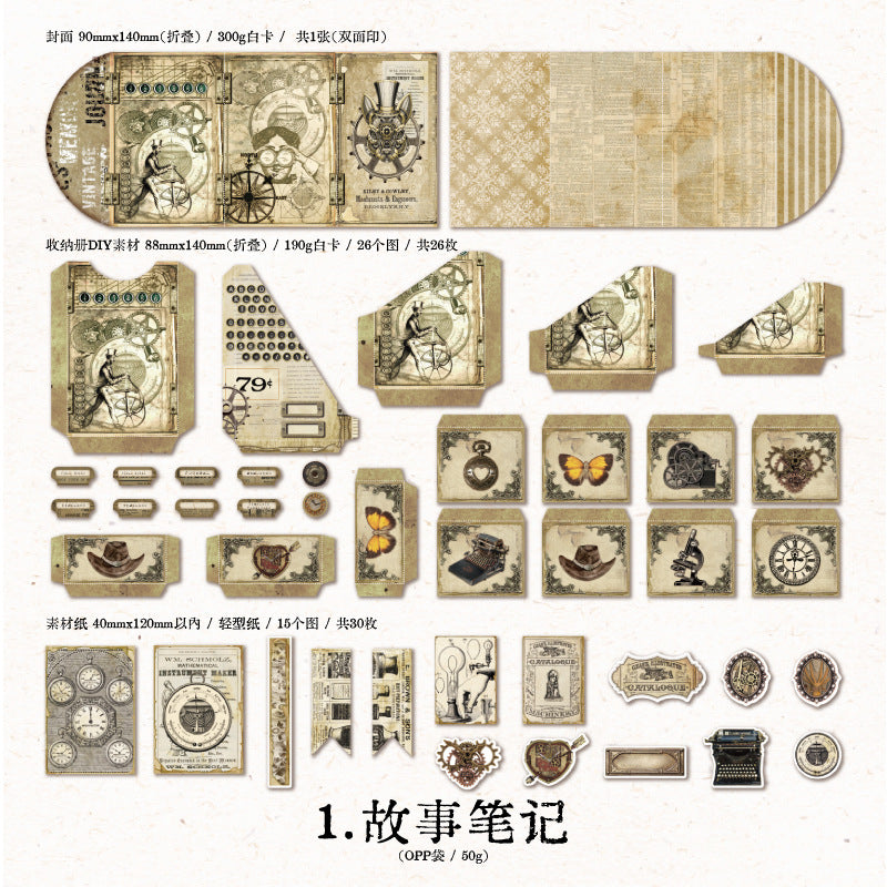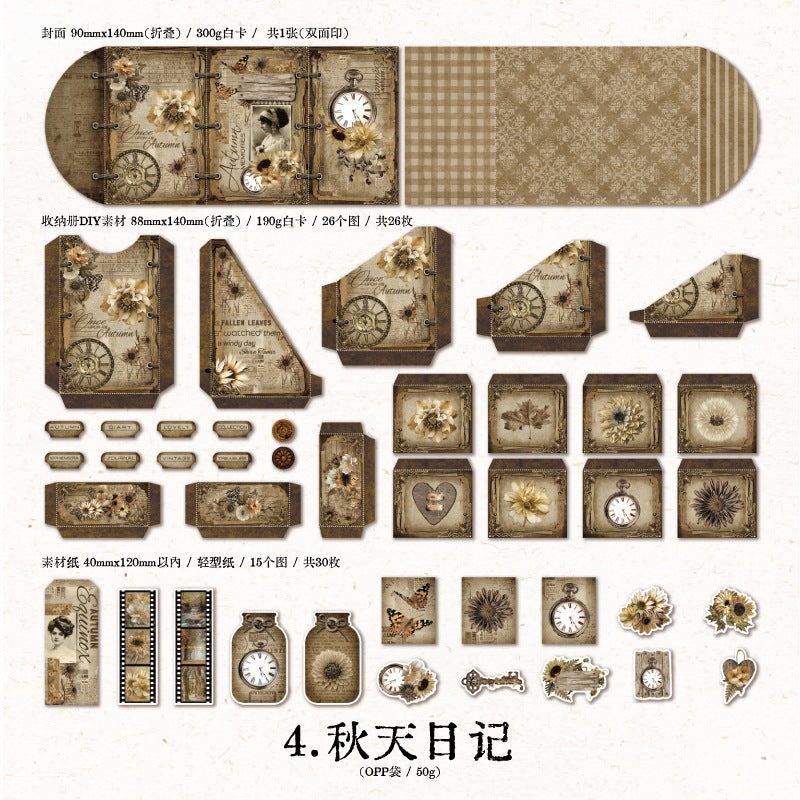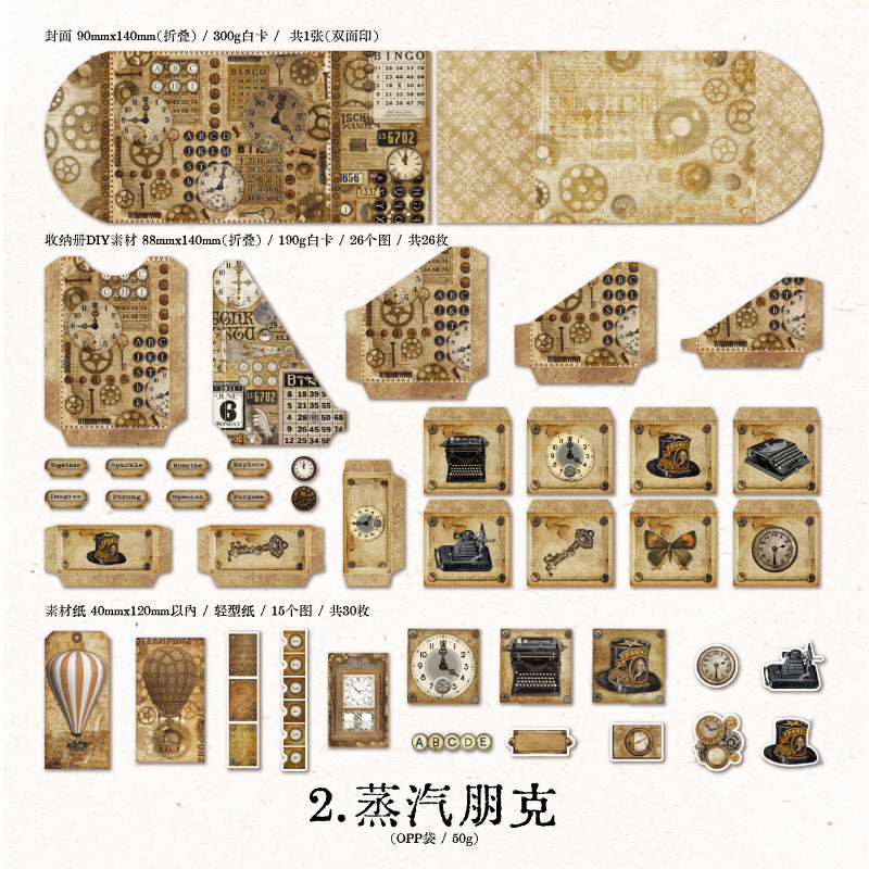 You will get 1 pack of 57 pcs scrapbook supplies from Obujo
