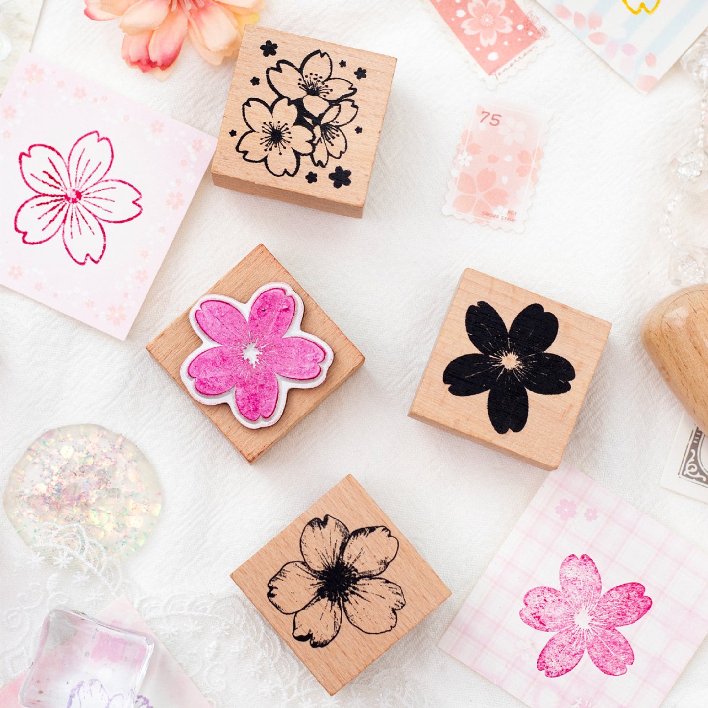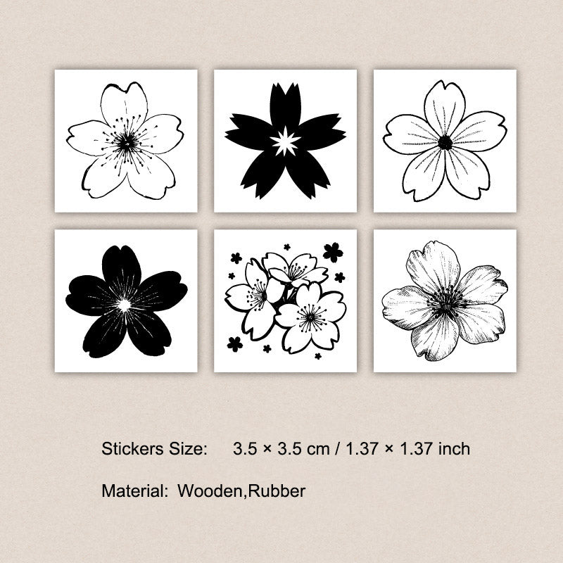 6 Pcs Cherry Blossom Sakura Wooden Stamp YHMR