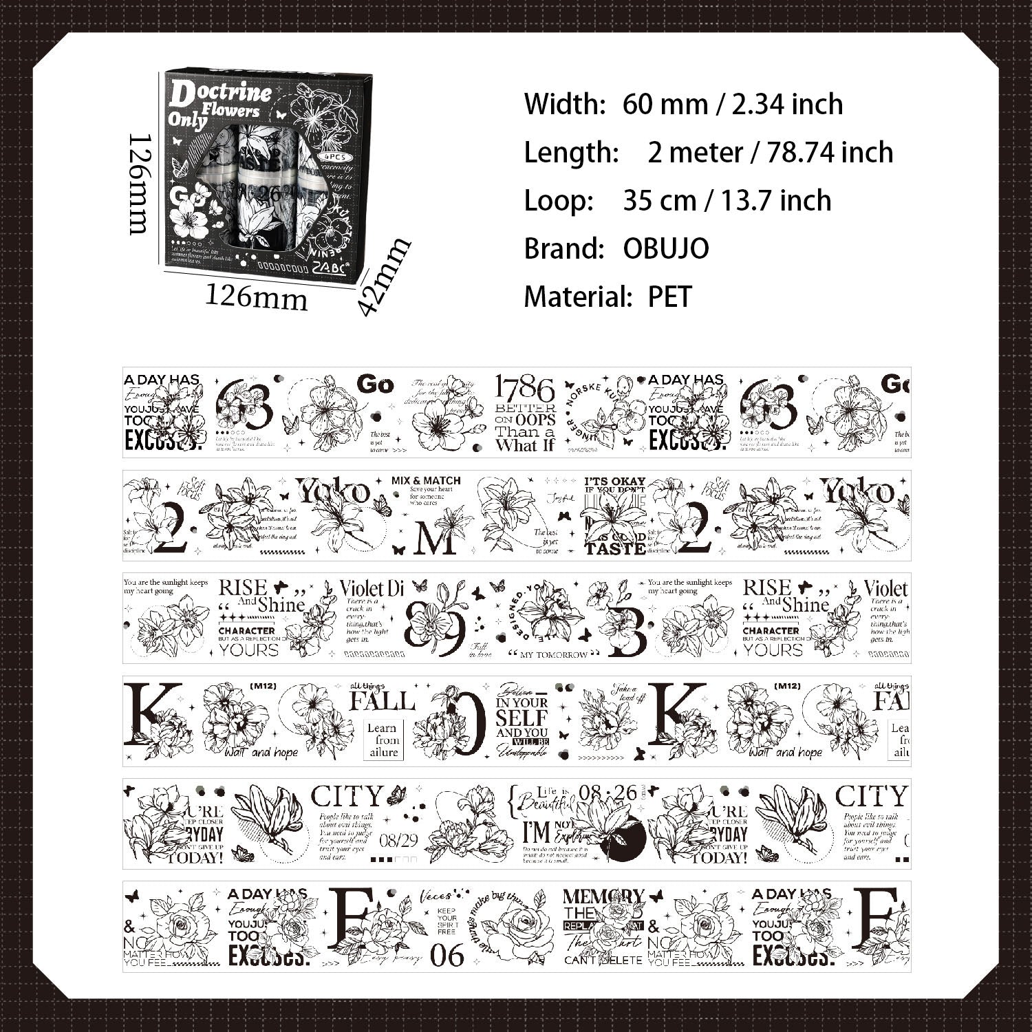 6 Rolls Vintage Floral Letter Number PET Tapes Set MBHJ
