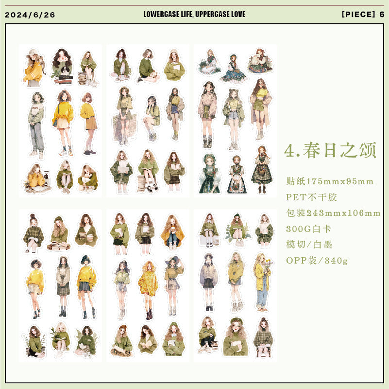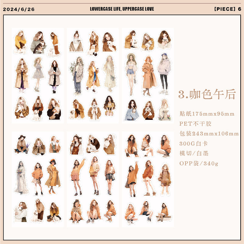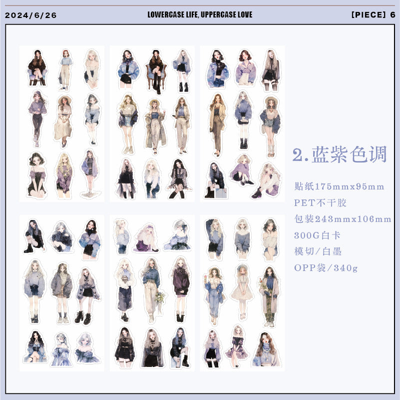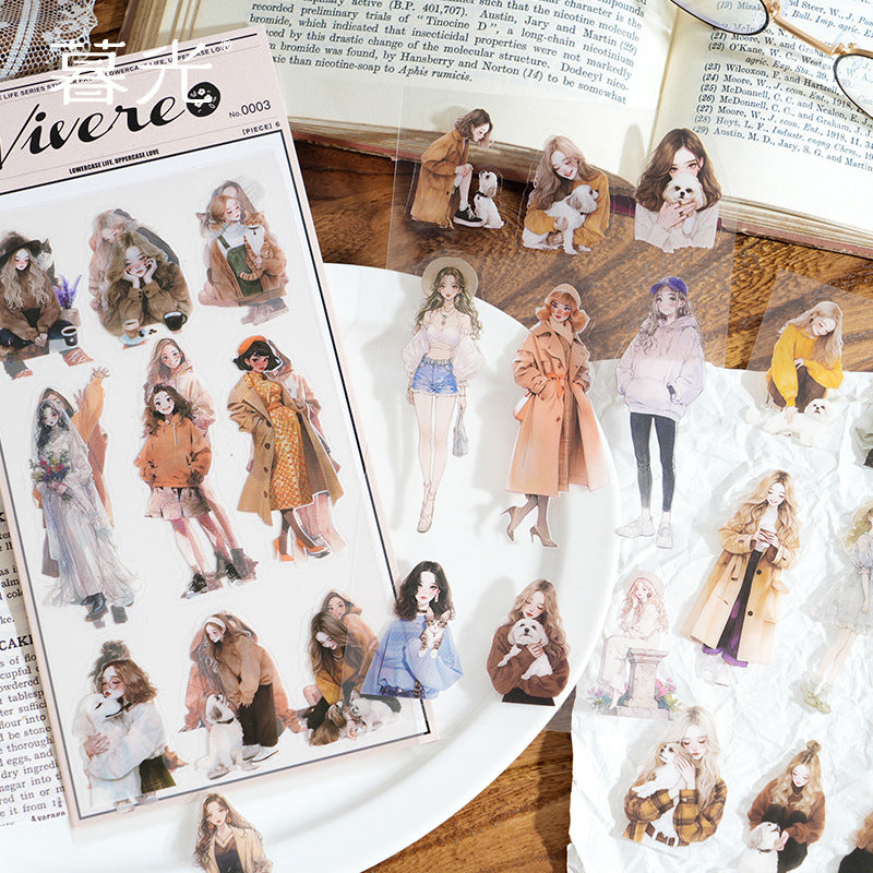 6 Sheets Fashion Girl PET Stickers XXSH