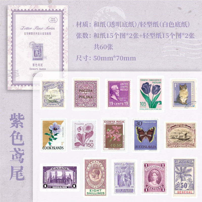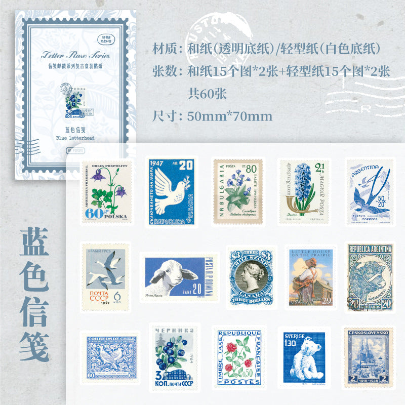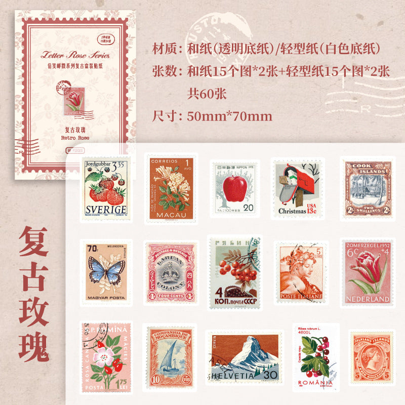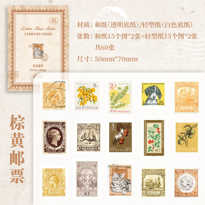 60 Pcs Postage Stamp Stickers XFYC