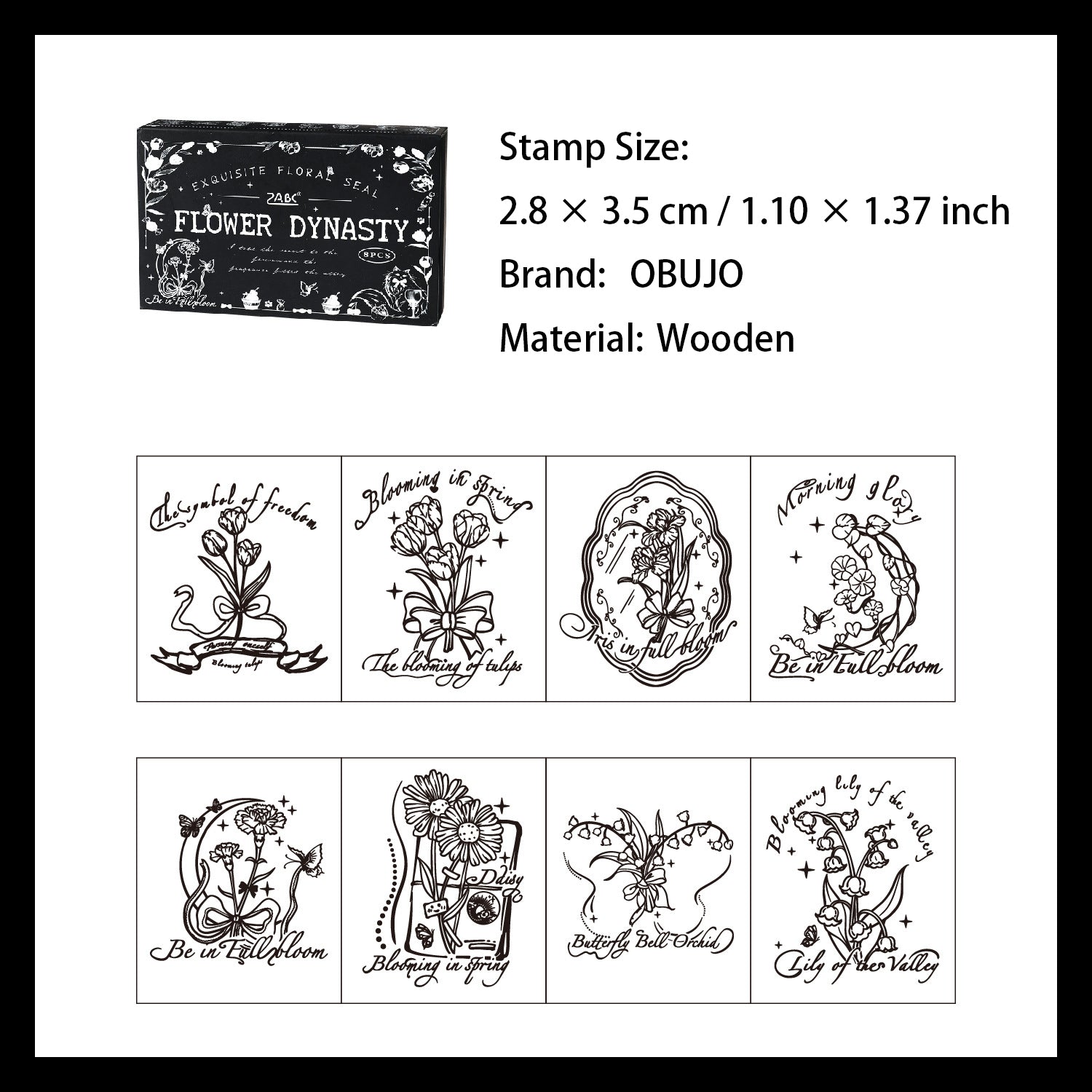 8 Pcs Flower Wooden Stamp Kit HZYY